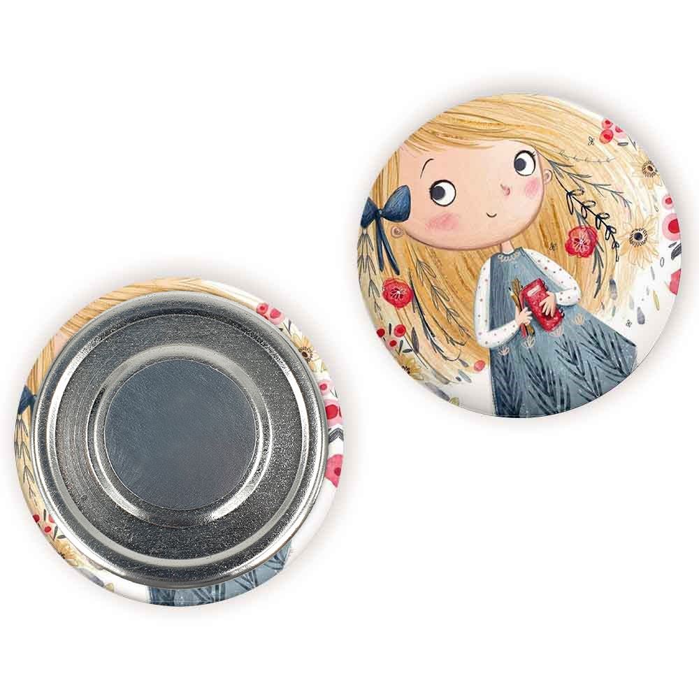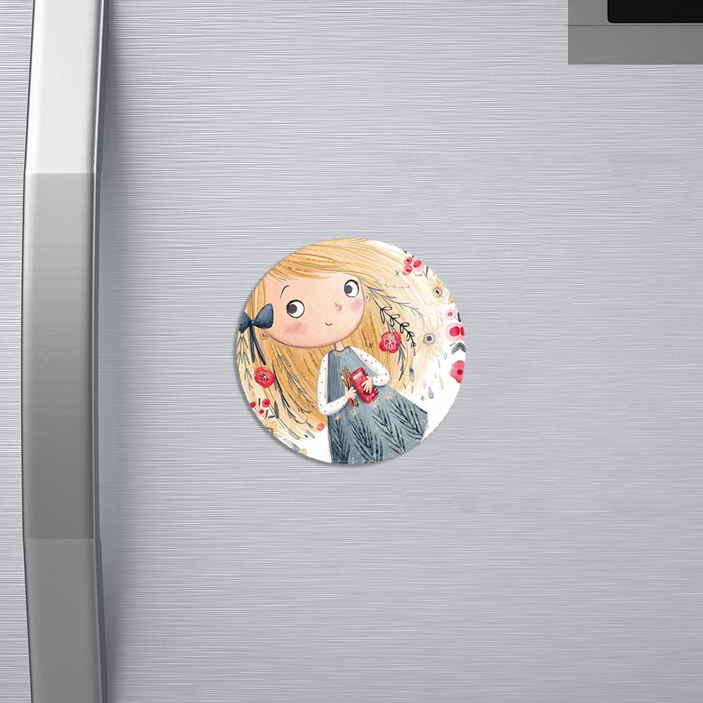 مگنت دخترونه خندالو با روکش سلفون مات مخملی ضدخش و قطعه پشتی فلزی تولید شده است که آهنربای اتمی بکار برده شده در محصول، بصورت مخفی تعبیه شده ودیده نمی شود. ضمن اینکه گیرایی بسیار بالایی داشته و به هیچ عنوان از روی یخچال نمی افتد.