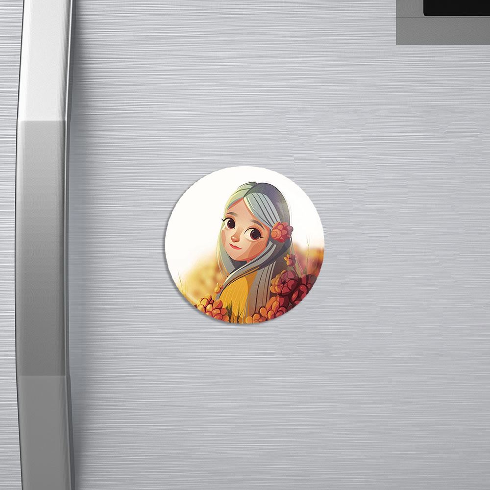 مگنت دخترونه خندالو با روکش سلفون مات مخملی ضدخش و قطعه پشتی فلزی تولید شده است که آهنربای اتمی بکار برده شده در محصول، بصورت مخفی تعبیه شده ودیده نمی شود. ضمن اینکه گیرایی بسیار بالایی داشته و به هیچ عنوان از روی یخچال نمی افتد.