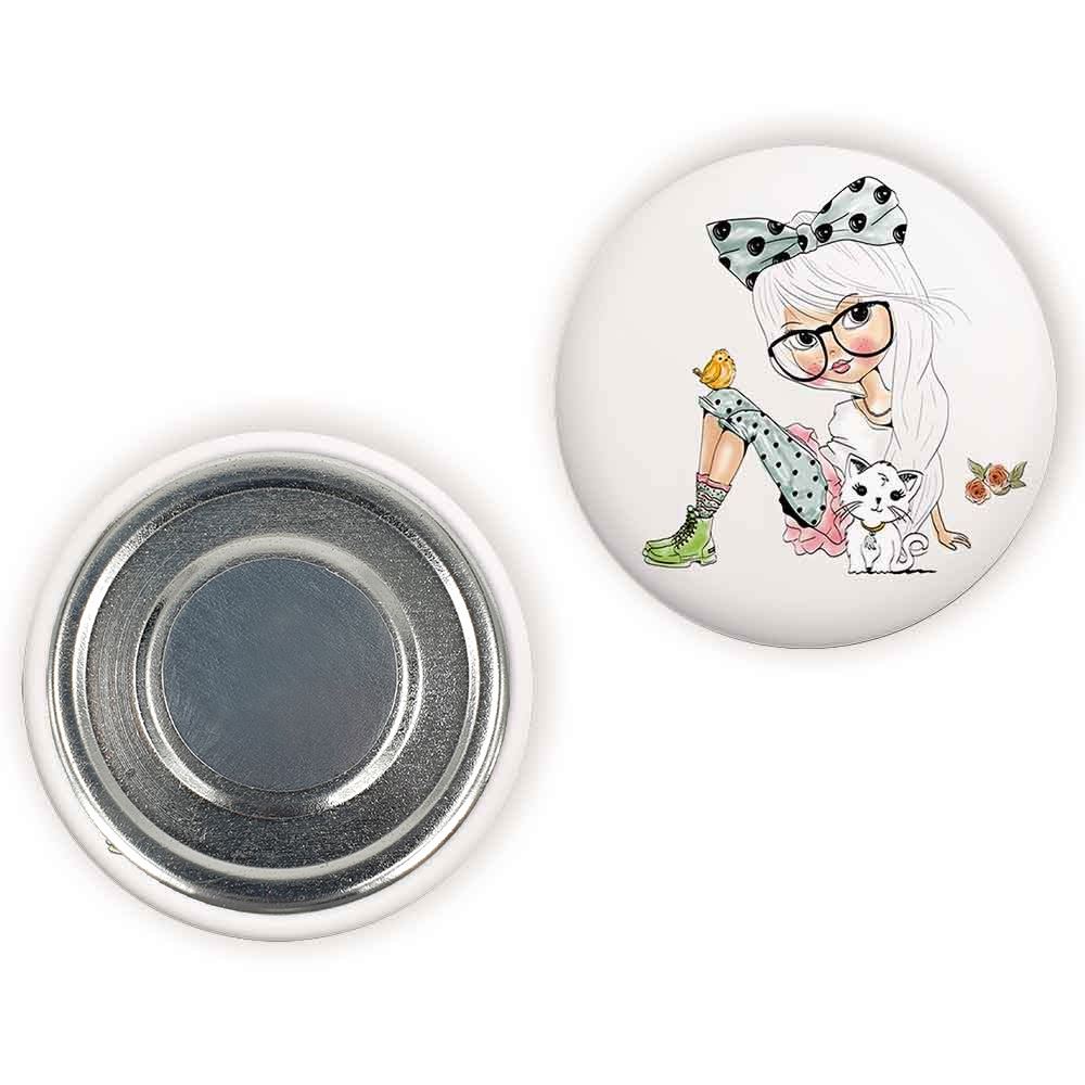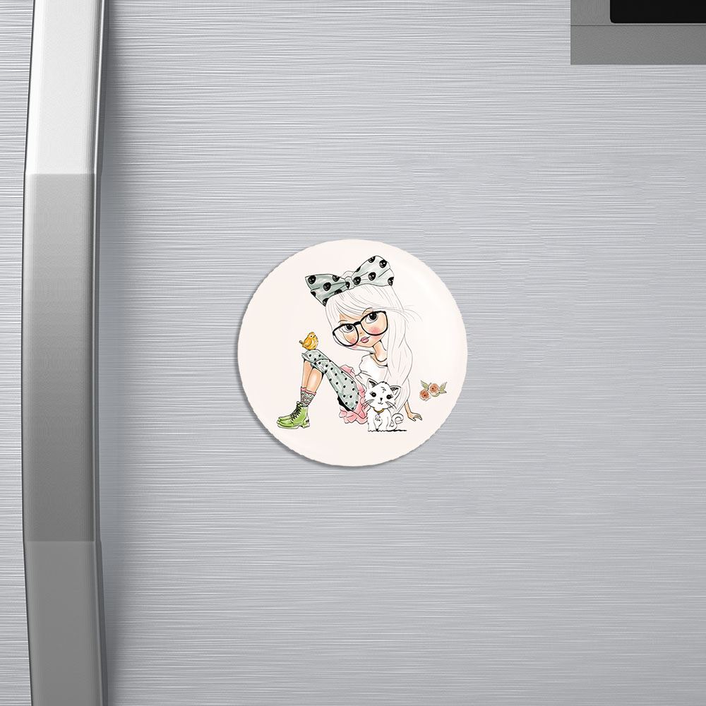 مگنت دخترونه خندالو با روکش سلفون مات مخملی ضدخش و قطعه پشتی فلزی تولید شده است که آهنربای اتمی بکار برده شده در محصول، بصورت مخفی تعبیه شده ودیده نمی شود. ضمن اینکه گیرایی بسیار بالایی داشته و به هیچ عنوان از روی یخچال نمی افتد.