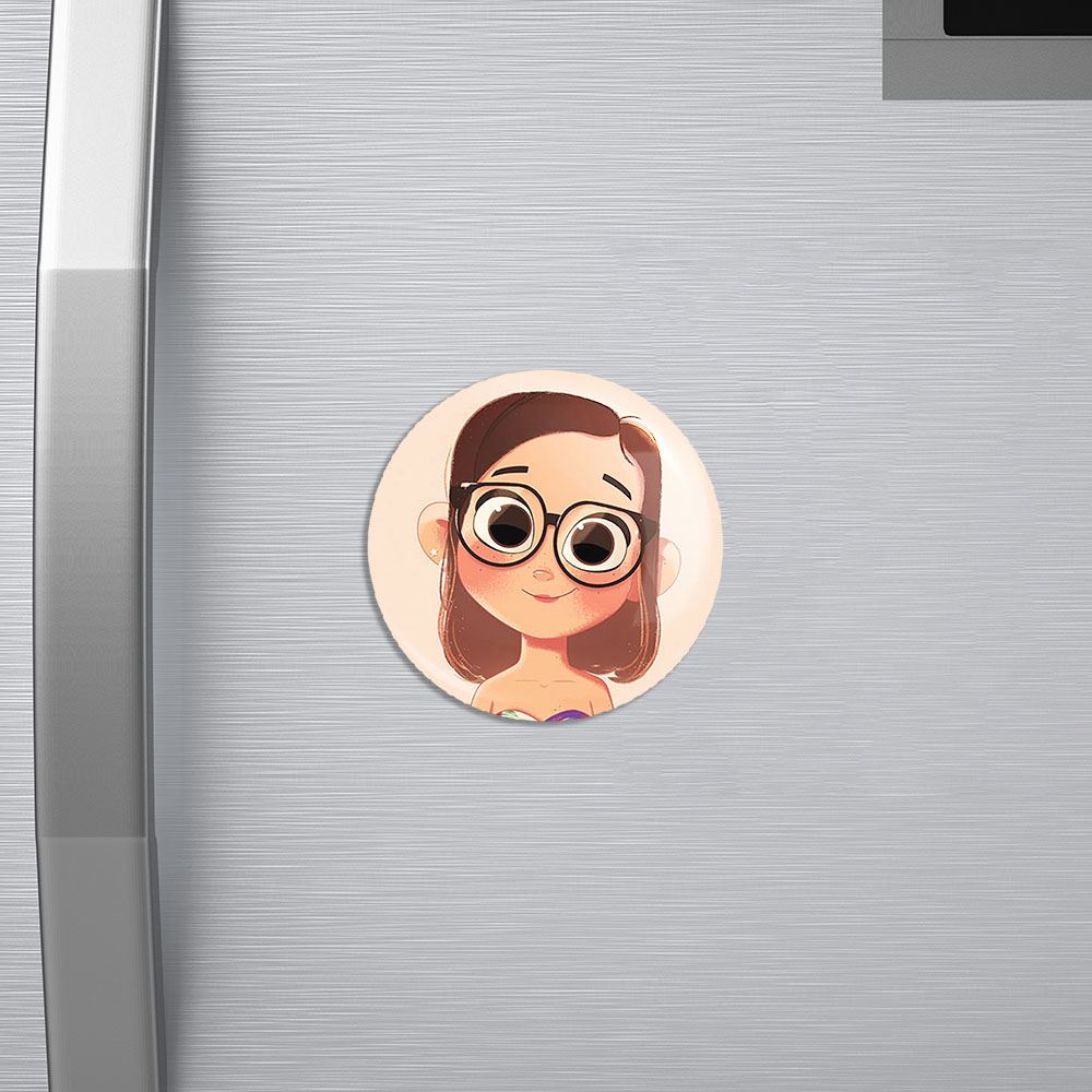 مگنت دخترونه خندالو با روکش سلفون مات مخملی ضدخش و قطعه پشتی فلزی تولید شده است که آهنربای اتمی بکار برده شده در محصول، بصورت مخفی تعبیه شده ودیده نمی شود. ضمن اینکه گیرایی بسیار بالایی داشته و به هیچ عنوان از روی یخچال نمی افتد.