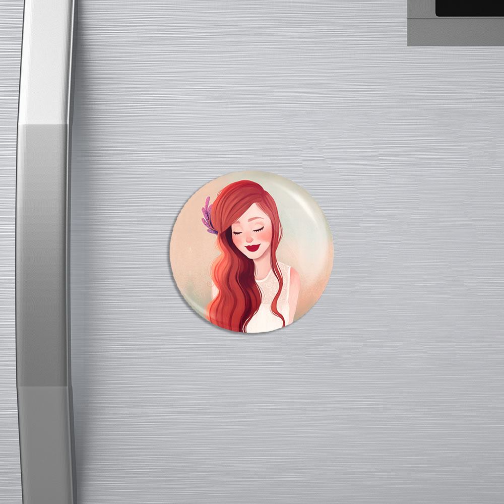 مگنت دخترونه خندالو با روکش سلفون مات مخملی ضدخش و قطعه پشتی فلزی تولید شده است که آهنربای اتمی بکار برده شده در محصول، بصورت مخفی تعبیه شده ودیده نمی شود. ضمن اینکه گیرایی بسیار بالایی داشته و به هیچ عنوان از روی یخچال نمی افتد.