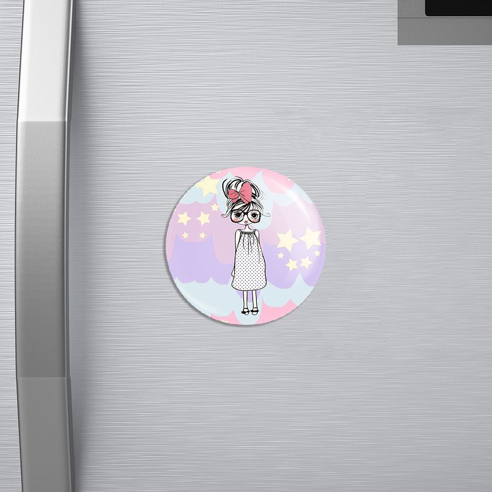 مگنت دخترونه خندالو با روکش سلفون مات مخملی ضدخش و قطعه پشتی فلزی تولید شده است که آهنربای اتمی بکار برده شده در محصول، بصورت مخفی تعبیه شده ودیده نمی شود. ضمن اینکه گیرایی بسیار بالایی داشته و به هیچ عنوان از روی یخچال نمی افتد.