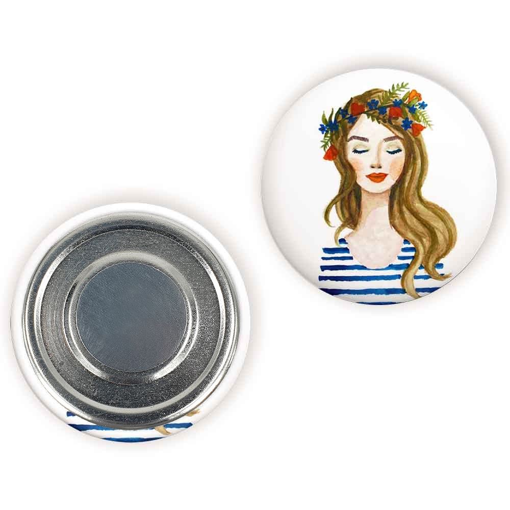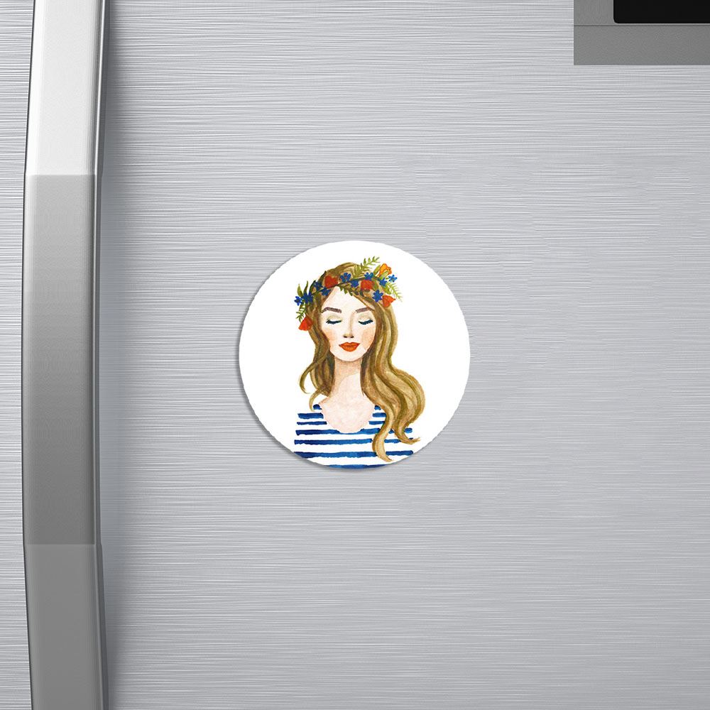 مگنت دخترونه خندالو با روکش سلفون مات مخملی ضدخش و قطعه پشتی فلزی تولید شده است که آهنربای اتمی بکار برده شده در محصول، بصورت مخفی تعبیه شده ودیده نمی شود. ضمن اینکه گیرایی بسیار بالایی داشته و به هیچ عنوان از روی یخچال نمی افتد.