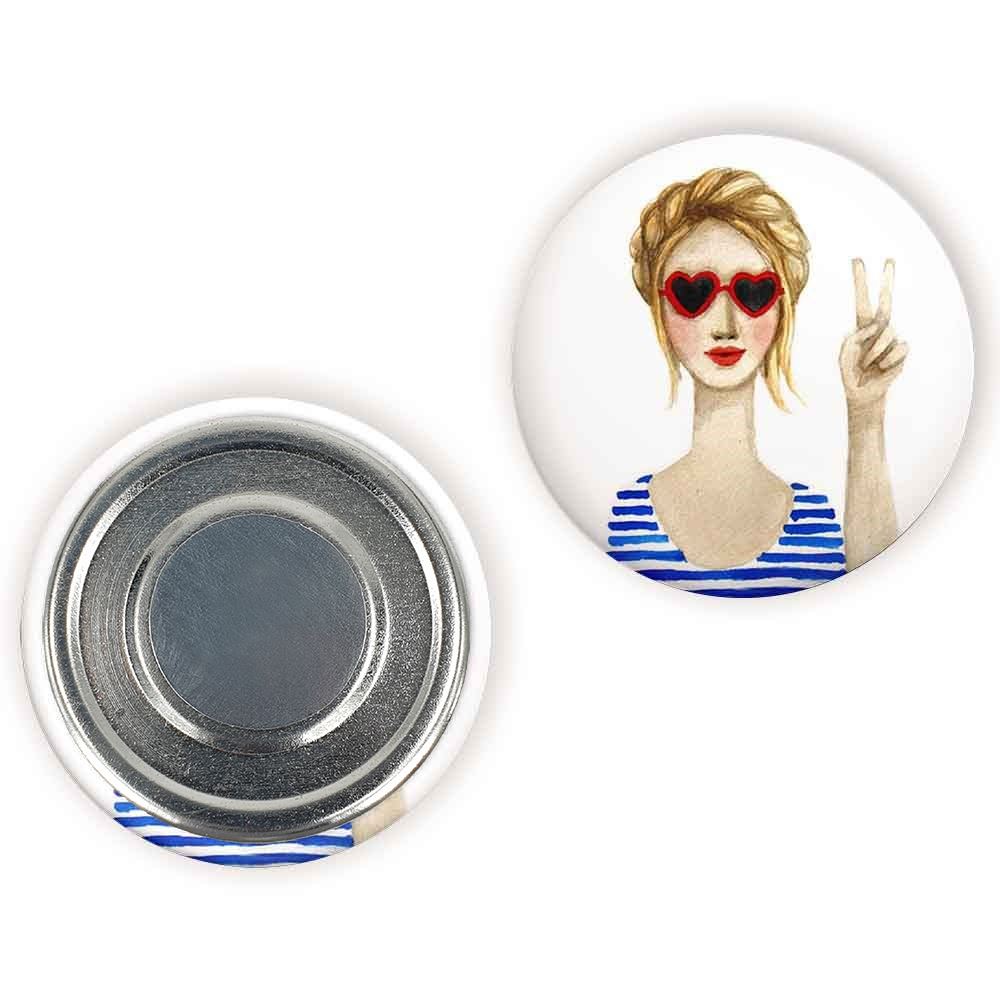 مگنت دخترونه خندالو با روکش سلفون مات مخملی ضدخش و قطعه پشتی فلزی تولید شده است که آهنربای اتمی بکار برده شده در محصول، بصورت مخفی تعبیه شده ودیده نمی شود. ضمن اینکه گیرایی بسیار بالایی داشته و به هیچ عنوان از روی یخچال نمی افتد.