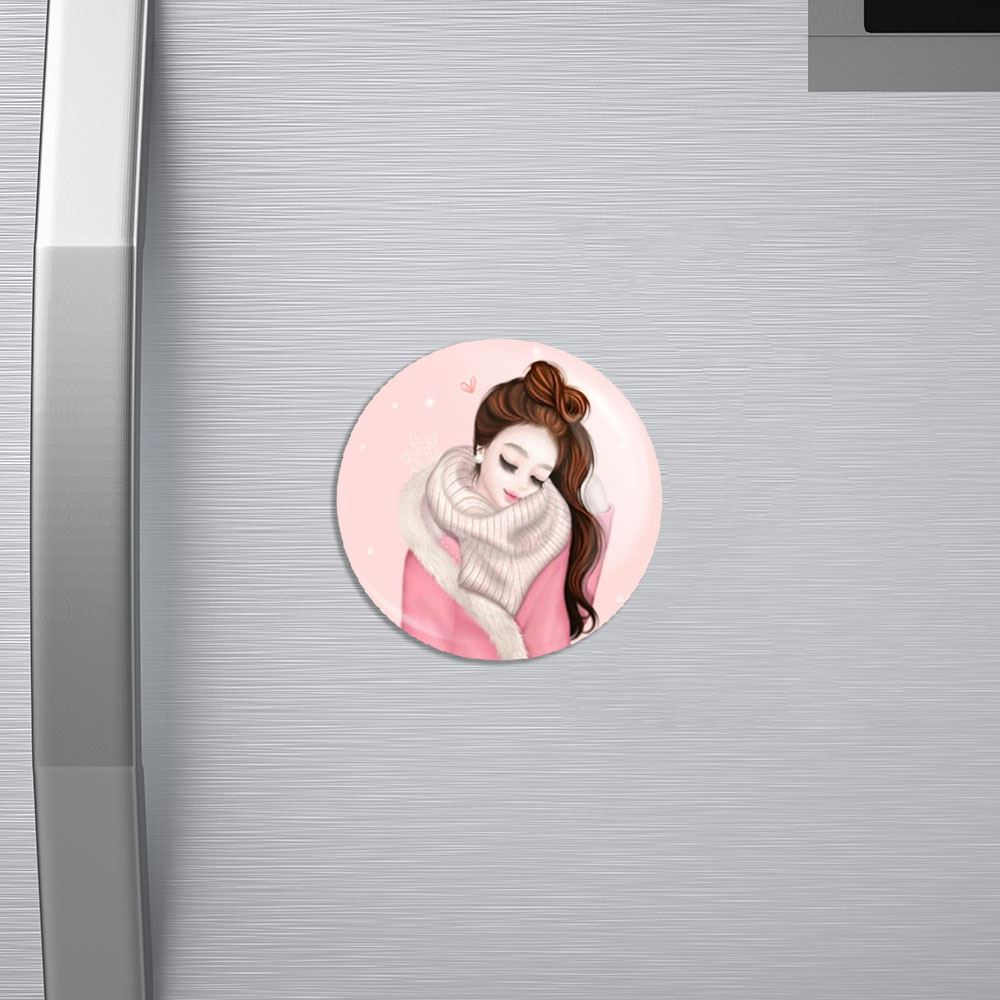 مگنت دخترونه خندالو با روکش سلفون مات مخملی ضدخش و قطعه پشتی فلزی تولید شده است که آهنربای اتمی بکار برده شده در محصول، بصورت مخفی تعبیه شده ودیده نمی شود. ضمن اینکه گیرایی بسیار بالایی داشته و به هیچ عنوان از روی یخچال نمی افتد.