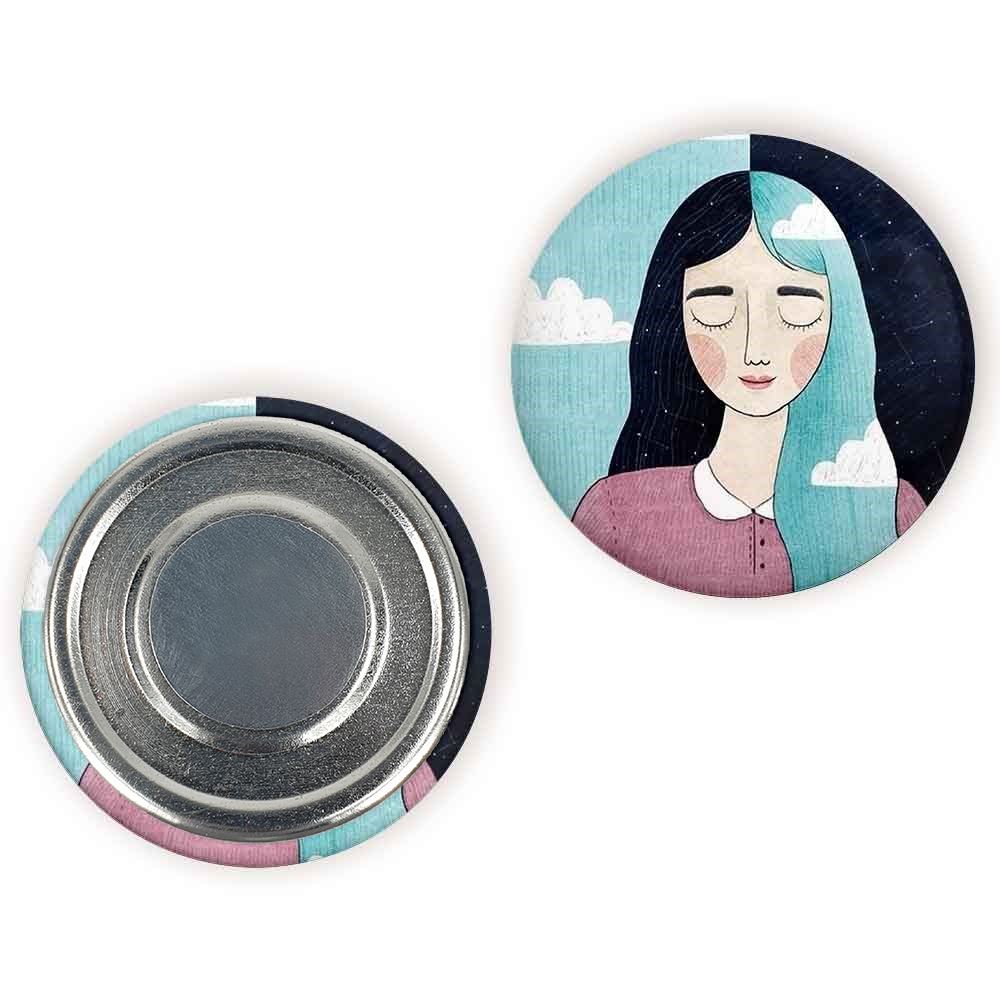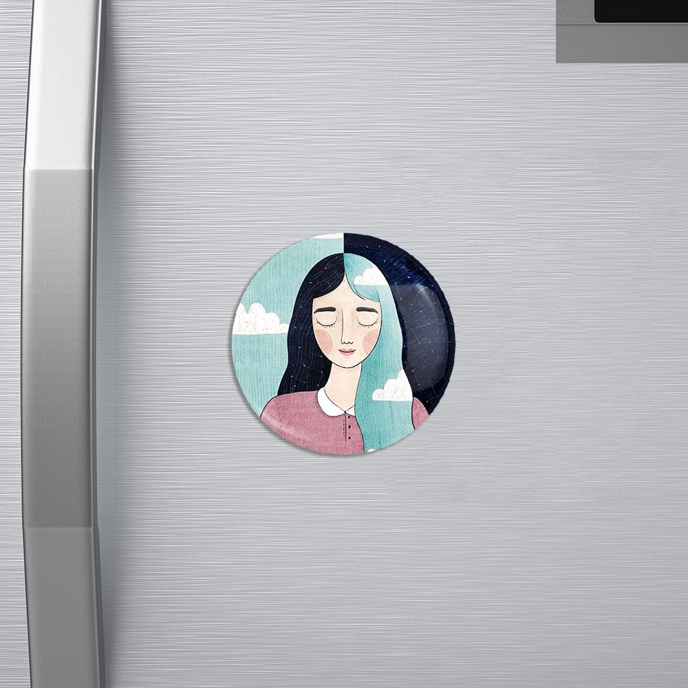 مگنت دخترونه خندالو با روکش سلفون مات مخملی ضدخش و قطعه پشتی فلزی تولید شده است که آهنربای اتمی بکار برده شده در محصول، بصورت مخفی تعبیه شده ودیده نمی شود. ضمن اینکه گیرایی بسیار بالایی داشته و به هیچ عنوان از روی یخچال نمی افتد.
