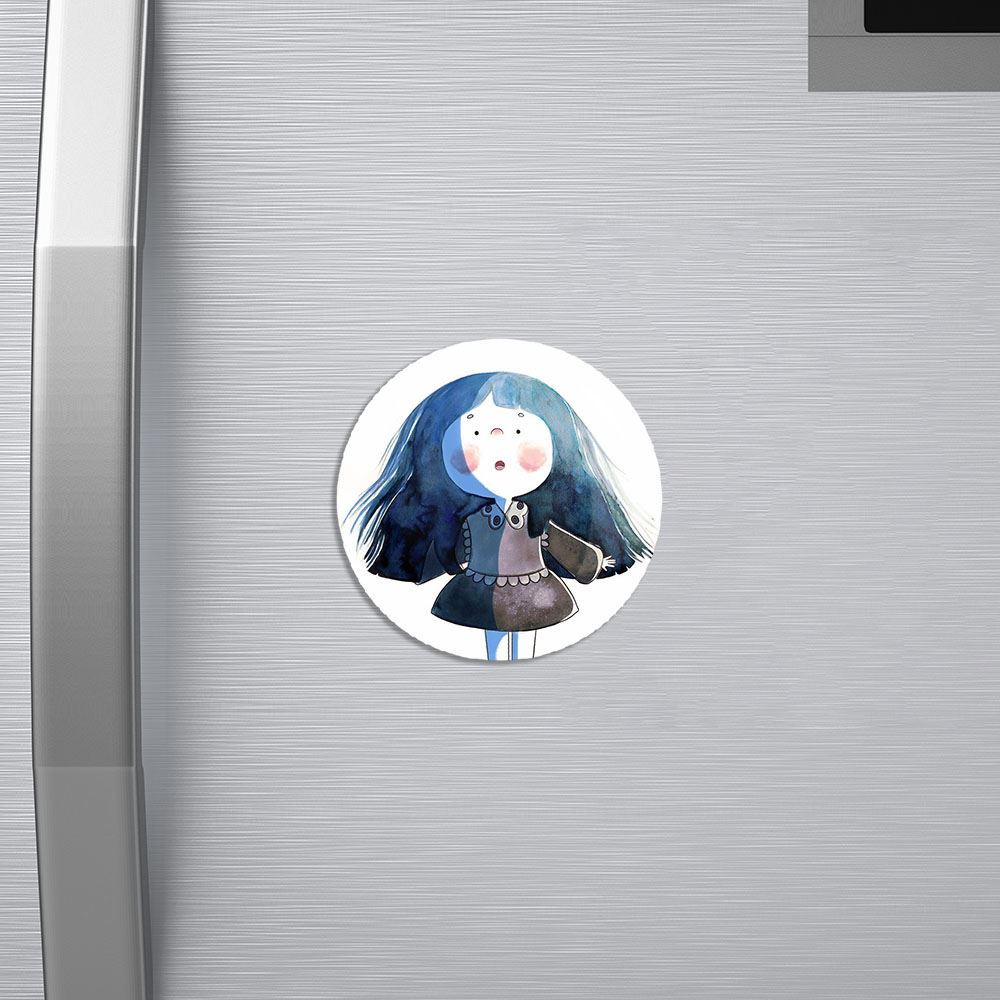 مگنت دخترونه خندالو با روکش سلفون مات مخملی ضدخش و قطعه پشتی فلزی تولید شده است که آهنربای اتمی بکار برده شده در محصول، بصورت مخفی تعبیه شده ودیده نمی شود. ضمن اینکه گیرایی بسیار بالایی داشته و به هیچ عنوان از روی یخچال نمی افتد.