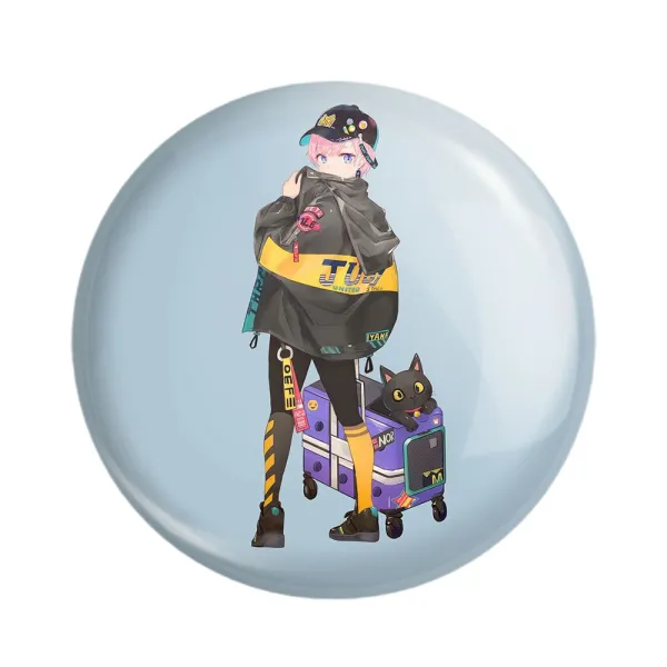 مگنت دختر انیمه ای خندالو با روکش سلفون مات مخملی ضدخش و قطعه پشتی فلزی تولید شده است که آهنربای اتمی بکار برده شده در محصول، بصورت مخفی تعبیه شده ودیده نمی شود. ضمن اینکه گیرایی بسیار بالایی داشته و به هیچ عنوان از روی یخچال نمی افتد.