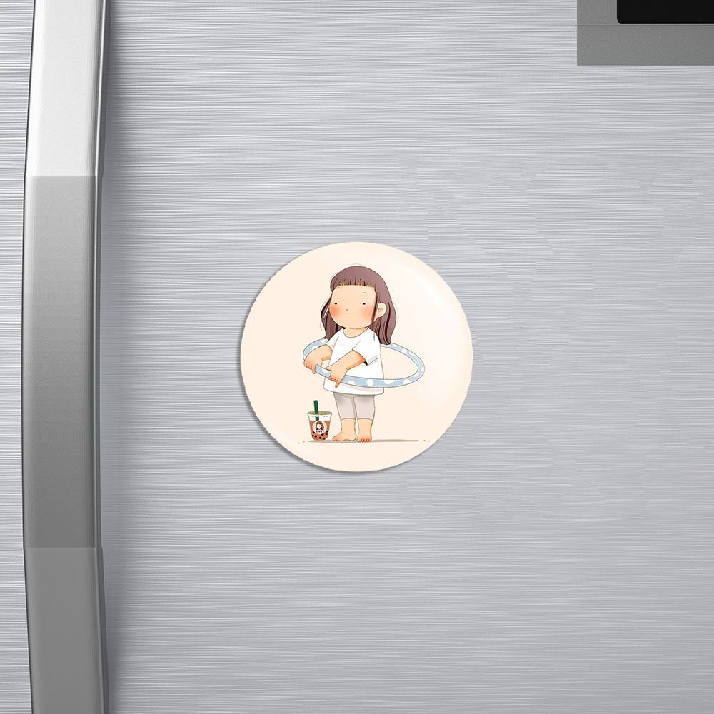 مگنت دختر ورزشی خندالو با روکش سلفون مات مخملی ضدخش و قطعه پشتی فلزی تولید شده است که آهنربای اتمی بکار برده شده در محصول، بصورت مخفی تعبیه شده ودیده نمی شود. ضمن اینکه گیرایی بسیار بالایی داشته و به هیچ عنوان از روی یخچال نمی افتد.