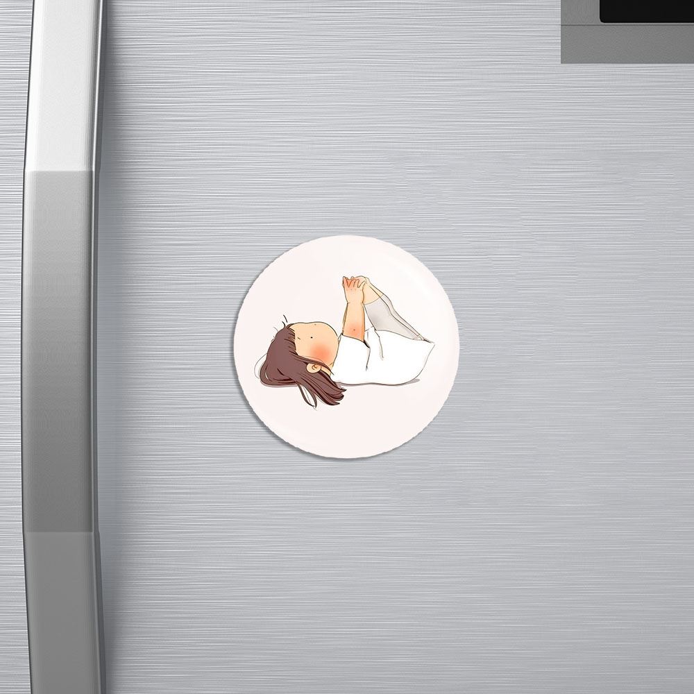 مگنت دختر ورزشی خندالو با روکش سلفون مات مخملی ضدخش و قطعه پشتی فلزی تولید شده است که آهنربای اتمی بکار برده شده در محصول، بصورت مخفی تعبیه شده ودیده نمی شود. ضمن اینکه گیرایی بسیار بالایی داشته و به هیچ عنوان از روی یخچال نمی افتد.