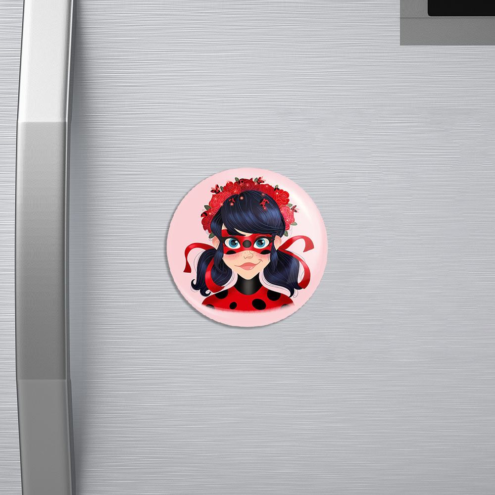 مگنت دختر کفشدوزکی خندالو با روکش سلفون مات مخملی ضدخش و قطعه پشتی فلزی تولید شده است که آهنربای اتمی بکار برده شده در محصول، بصورت مخفی تعبیه شده ودیده نمی شود. ضمن اینکه گیرایی بسیار بالایی داشته و به هیچ عنوان از روی یخچال نمی افتد.