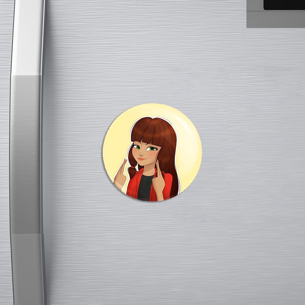 مگنت دختر کفشدوزکی خندالو با روکش سلفون مات مخملی ضدخش و قطعه پشتی فلزی تولید شده است که آهنربای اتمی بکار برده شده در محصول، بصورت مخفی تعبیه شده ودیده نمی شود. ضمن اینکه گیرایی بسیار بالایی داشته و به هیچ عنوان از روی یخچال نمی افتد.