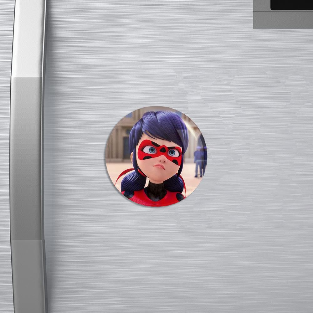مگنت دختر کفشدوزکی خندالو با روکش سلفون مات مخملی ضدخش و قطعه پشتی فلزی تولید شده است که آهنربای اتمی بکار برده شده در محصول، بصورت مخفی تعبیه شده ودیده نمی شود. ضمن اینکه گیرایی بسیار بالایی داشته و به هیچ عنوان از روی یخچال نمی افتد.