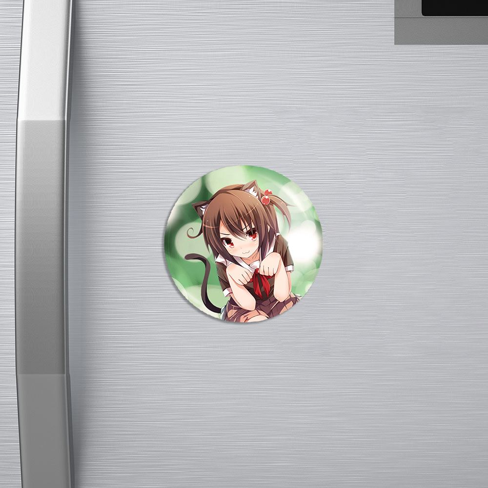 مگنت دختر گربه انیمه ای انیمه دختر خندالو با روکش سلفون مات مخملی ضدخش و قطعه پشتی فلزی تولید شده است که آهنربای اتمی بکار برده شده در محصول، بصورت مخفی تعبیه شده ودیده نمی شود. ضمن اینکه گیرایی بسیار بالایی داشته و به هیچ عنوان از روی یخچال نمی افتد.