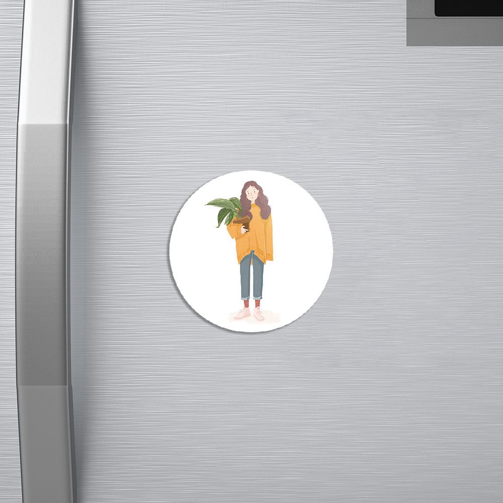 مگنت دختر خندالو با روکش سلفون مات مخملی ضدخش و قطعه پشتی فلزی تولید شده است که آهنربای اتمی بکار برده شده در محصول، بصورت مخفی تعبیه شده ودیده نمی شود. ضمن اینکه گیرایی بسیار بالایی داشته و به هیچ عنوان از روی یخچال نمی افتد.