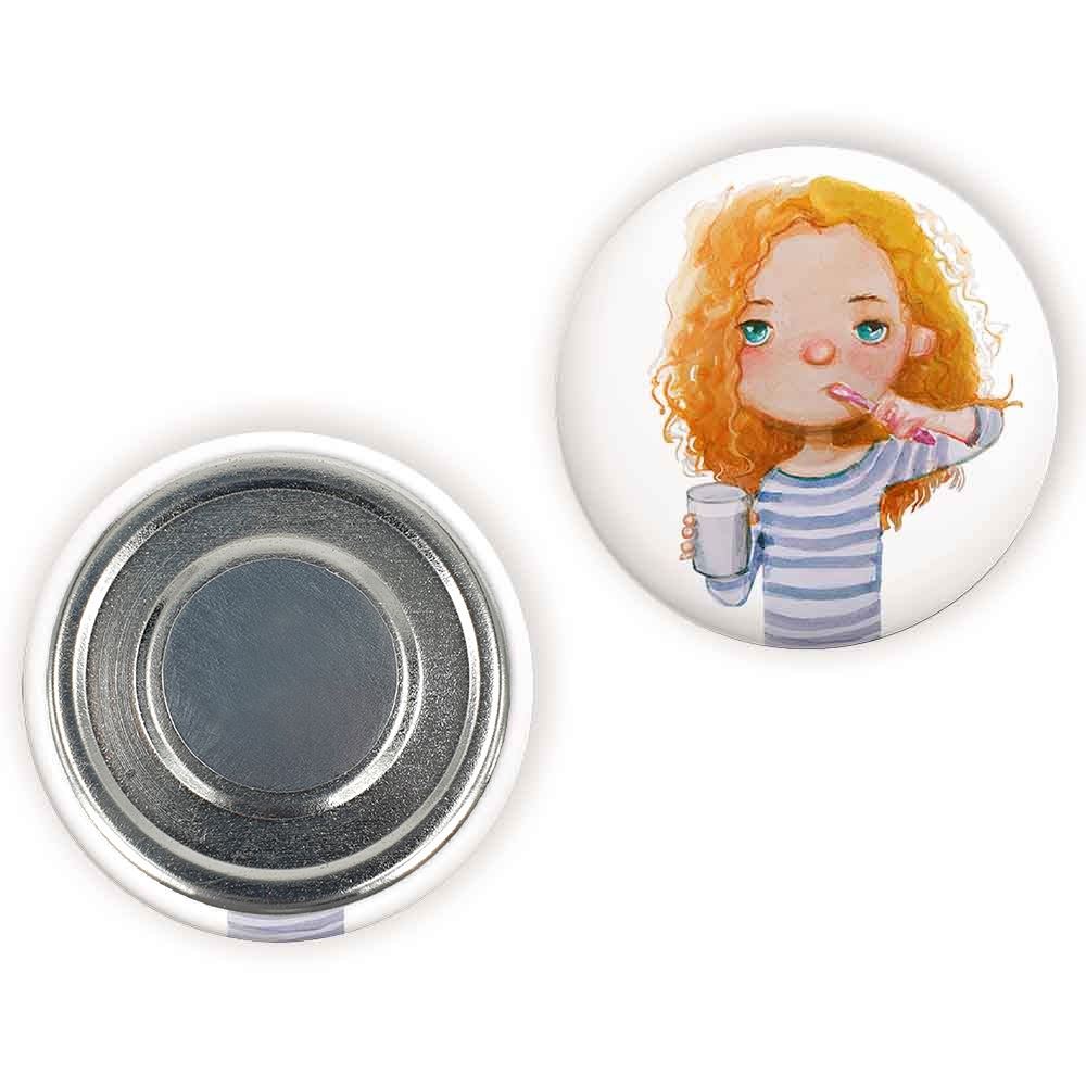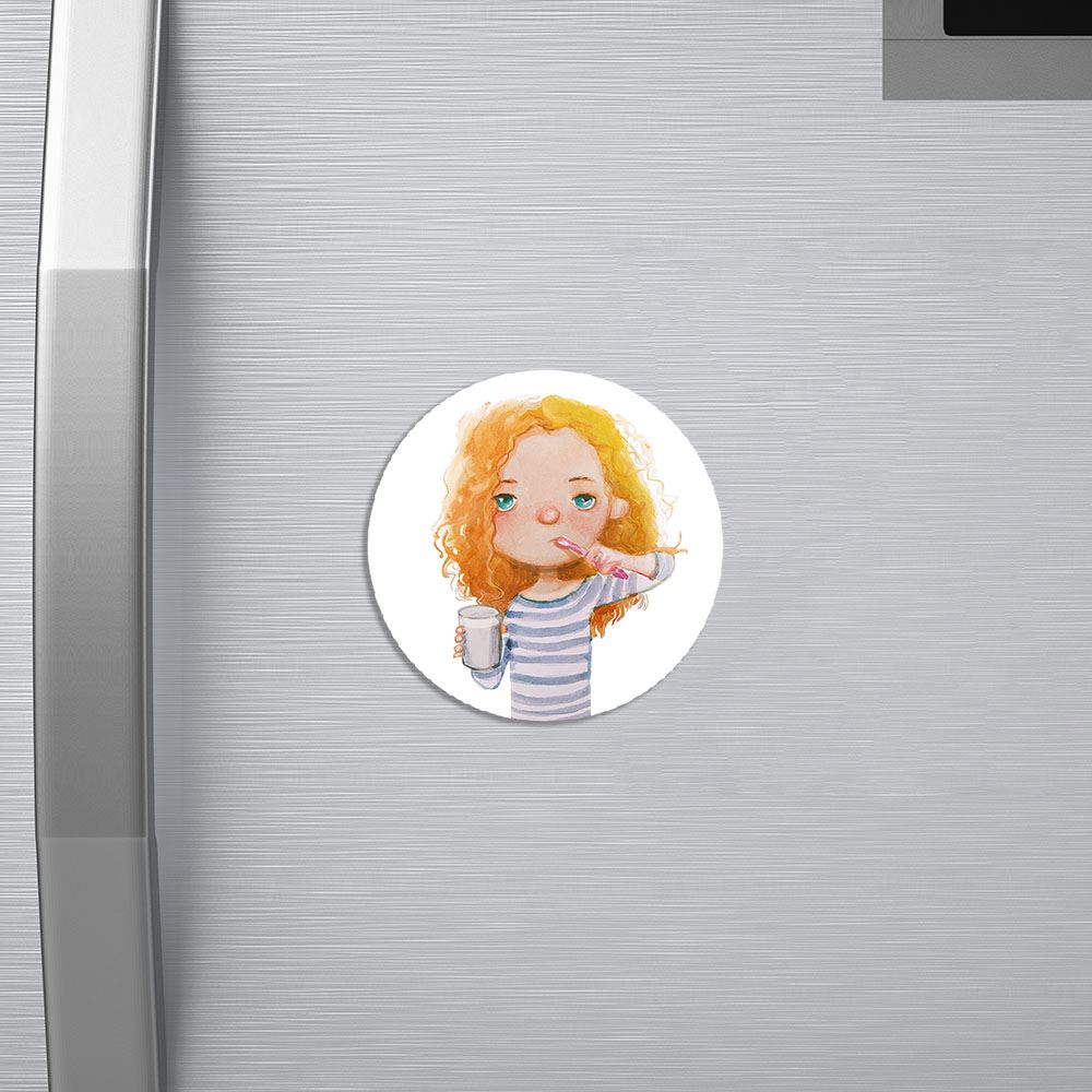 مگنت دختر خندالو با روکش سلفون مات مخملی ضدخش و قطعه پشتی فلزی تولید شده است که آهنربای اتمی بکار برده شده در محصول، بصورت مخفی تعبیه شده ودیده نمی شود. ضمن اینکه گیرایی بسیار بالایی داشته و به هیچ عنوان از روی یخچال نمی افتد.