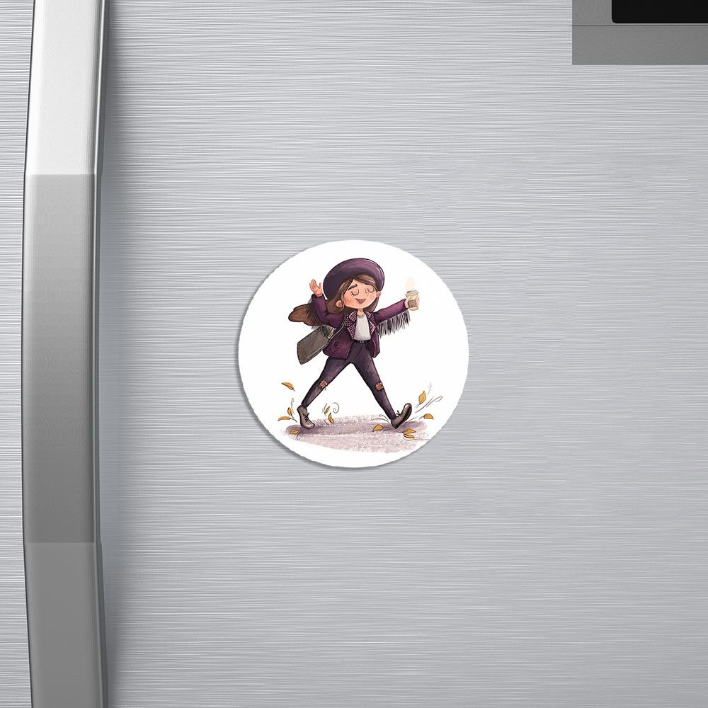 مگنت دختر خندالو با روکش سلفون مات مخملی ضدخش و قطعه پشتی فلزی تولید شده است که آهنربای اتمی بکار برده شده در محصول، بصورت مخفی تعبیه شده ودیده نمی شود. ضمن اینکه گیرایی بسیار بالایی داشته و به هیچ عنوان از روی یخچال نمی افتد.