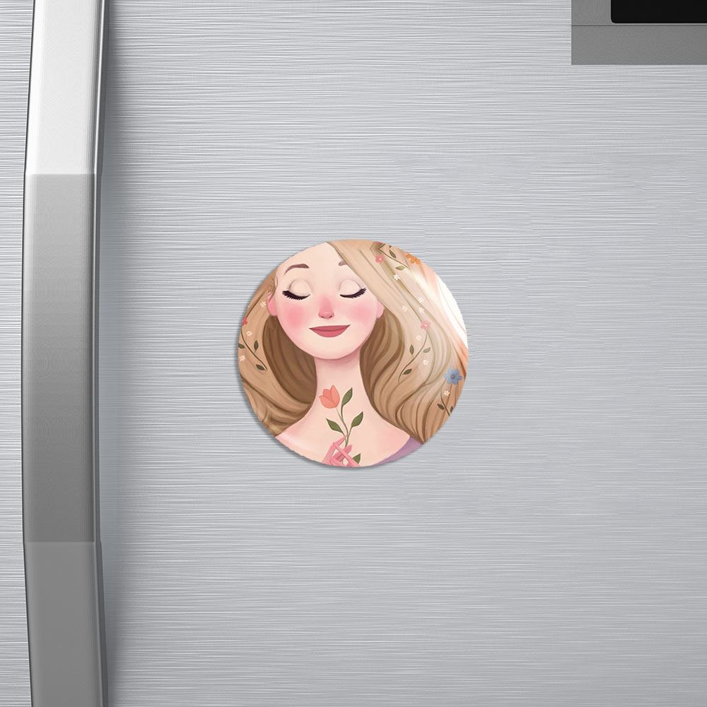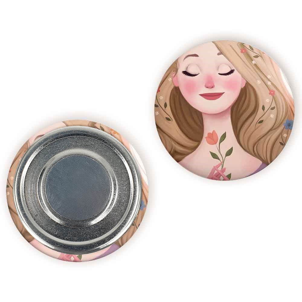 مگنت دختر خندالو با روکش سلفون مات مخملی ضدخش و قطعه پشتی فلزی تولید شده است که آهنربای اتمی بکار برده شده در محصول، بصورت مخفی تعبیه شده ودیده نمی شود. ضمن اینکه گیرایی بسیار بالایی داشته و به هیچ عنوان از روی یخچال نمی افتد.