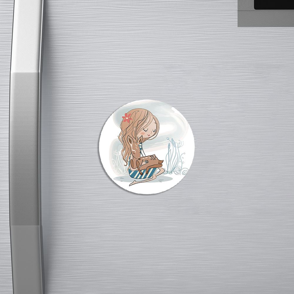 مگنت دختر خندالو با روکش سلفون مات مخملی ضدخش و قطعه پشتی فلزی تولید شده است که آهنربای اتمی بکار برده شده در محصول، بصورت مخفی تعبیه شده ودیده نمی شود. ضمن اینکه گیرایی بسیار بالایی داشته و به هیچ عنوان از روی یخچال نمی افتد.
