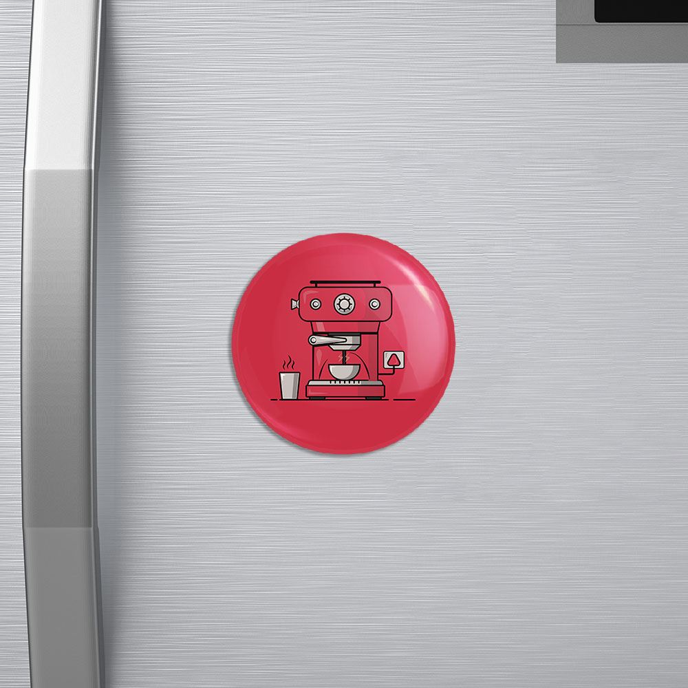 مگنت دستگاه قهوه ساز خندالو با روکش سلفون مات مخملی ضدخش و قطعه پشتی فلزی تولید شده است که آهنربای اتمی بکار برده شده در محصول، بصورت مخفی تعبیه شده ودیده نمی شود. ضمن اینکه گیرایی بسیار بالایی داشته و به هیچ عنوان از روی یخچال نمی افتد.
