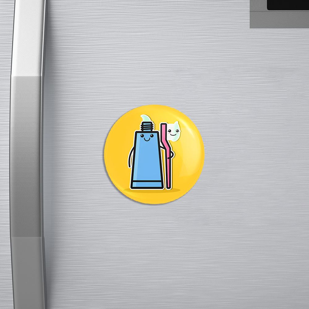 مگنت دندان و دندانپزشکی کودکانه خندالو با روکش سلفون مات مخملی ضدخش و قطعه پشتی فلزی تولید شده است که آهنربای اتمی بکار برده شده در محصول، بصورت مخفی تعبیه شده ودیده نمی شود. ضمن اینکه گیرایی بسیار بالایی داشته و به هیچ عنوان از روی یخچال نمی افتد.