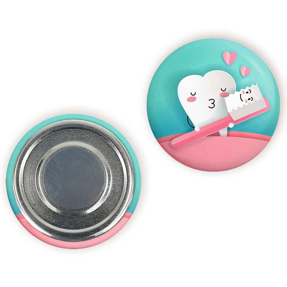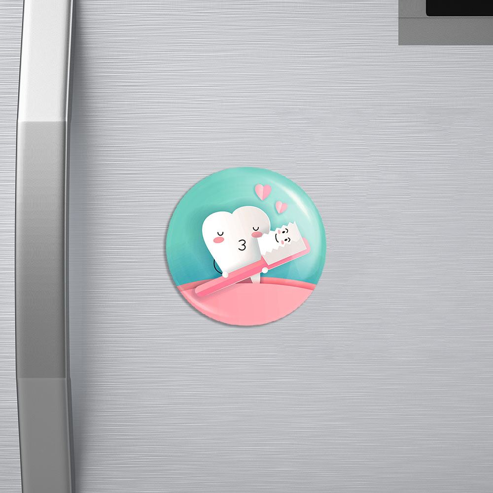 مگنت دندان و دندانپزشکی کودکانه خندالو با روکش سلفون مات مخملی ضدخش و قطعه پشتی فلزی تولید شده است که آهنربای اتمی بکار برده شده در محصول، بصورت مخفی تعبیه شده ودیده نمی شود. ضمن اینکه گیرایی بسیار بالایی داشته و به هیچ عنوان از روی یخچال نمی افتد.