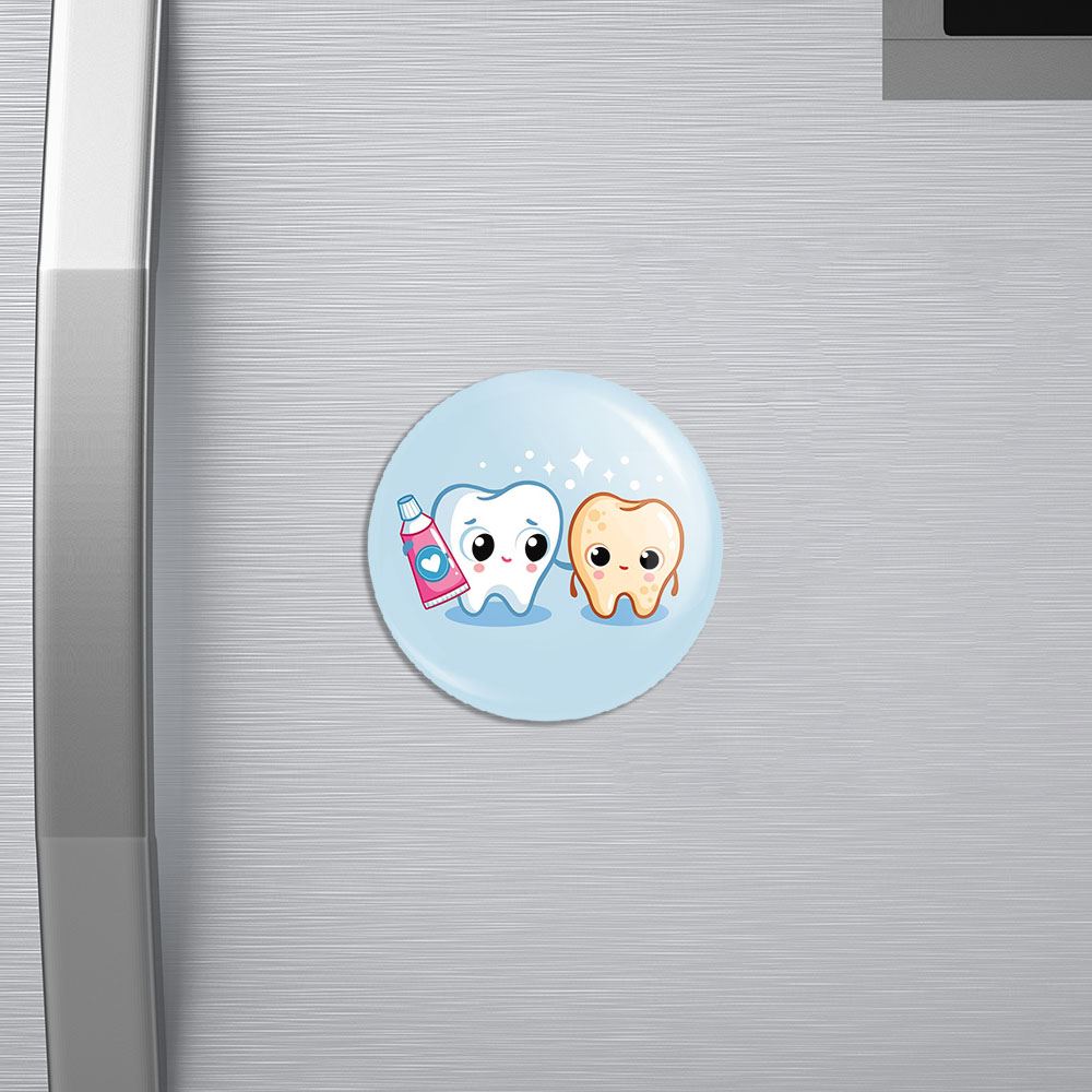 مگنت دندان و دندانپزشکی کودکانه خندالو با روکش سلفون مات مخملی ضدخش و قطعه پشتی فلزی تولید شده است که آهنربای اتمی بکار برده شده در محصول، بصورت مخفی تعبیه شده ودیده نمی شود. ضمن اینکه گیرایی بسیار بالایی داشته و به هیچ عنوان از روی یخچال نمی افتد. نکته مهم این است که به دلیل مخفی بودن آهنربا، هیچگونه خط و خش و زدگی بر روی یخچال ایجاد نخواهد شد. چاپ مگنت یخچال دندان و دندانپزشکی کودکانه نیز با دستگاه های استاندارد و با بهترین سطح کیفیت صورت گرفته و طرح با شفافیتی مثال زدنی و با سلفون چسبی تولید شده است که باعث شده محصول نهایی بدون شکست نور دیده شود. همچنین بسته بندی جذاب و مینیمال مگنت های یخچالی، آنها را مناسب هدیه کرده است. مگنت دندان و دندانپزشکی کودکانه خندالو علاوه بر روی یخچال بر هر سطح فلزی دیگری مثل لولای در اتاق، کمد های آهنی و … نیز قابل نصب است.