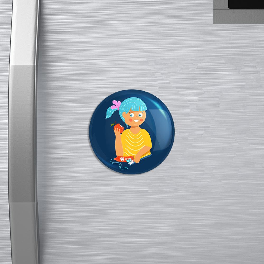 مگنت دندان و دندانپزشکی کودکانه خندالو با روکش سلفون مات مخملی ضدخش و قطعه پشتی فلزی تولید شده است که آهنربای اتمی بکار برده شده در محصول، بصورت مخفی تعبیه شده ودیده نمی شود. ضمن اینکه گیرایی بسیار بالایی داشته و به هیچ عنوان از روی یخچال نمی افتد.