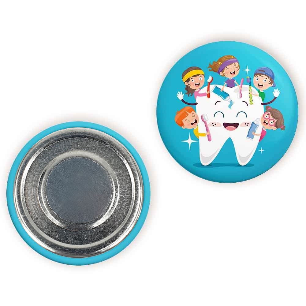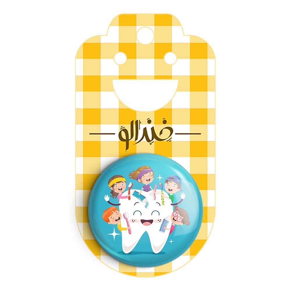 مگنت دندان و دندانپزشکی کودکانه خندالو با روکش سلفون مات مخملی ضدخش و قطعه پشتی فلزی تولید شده است که آهنربای اتمی بکار برده شده در محصول، بصورت مخفی تعبیه شده ودیده نمی شود. ضمن اینکه گیرایی بسیار بالایی داشته و به هیچ عنوان از روی یخچال نمی افتد.