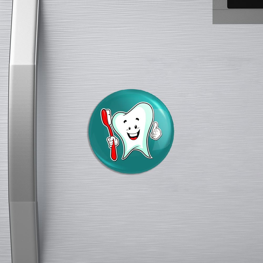 مگنت دندان و دندانپزشکی کودکانه خندالو با روکش سلفون مات مخملی ضدخش و قطعه پشتی فلزی تولید شده است که آهنربای اتمی بکار برده شده در محصول، بصورت مخفی تعبیه شده ودیده نمی شود. ضمن اینکه گیرایی بسیار بالایی داشته و به هیچ عنوان از روی یخچال نمی افتد.