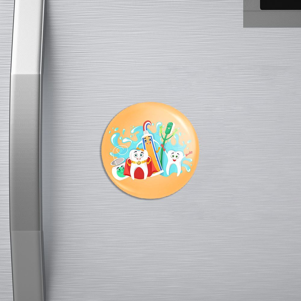مگنت دندان و دندانپزشکی کودکانه خندالو با روکش سلفون مات مخملی ضدخش و قطعه پشتی فلزی تولید شده است که آهنربای اتمی بکار برده شده در محصول، بصورت مخفی تعبیه شده ودیده نمی شود. ضمن اینکه گیرایی بسیار بالایی داشته و به هیچ عنوان از روی یخچال نمی افتد. نکته مهم این است که به دلیل مخفی بودن آهنربا، هیچگونه خط و خش و زدگی بر روی یخچال ایجاد نخواهد شد. چاپ مگنت یخچال دندان و دندانپزشکی کودکانه نیز با دستگاه های استاندارد و با بهترین سطح کیفیت صورت گرفته و طرح با شفافیتی مثال زدنی و با سلفون چسبی تولید شده است که باعث شده محصول نهایی بدون شکست نور دیده شود. همچنین بسته بندی جذاب و مینیمال مگنت های یخچالی، آنها را مناسب هدیه کرده است. مگنت دندان و دندانپزشکی کودکانه خندالو علاوه بر روی یخچال بر هر سطح فلزی دیگری مثل لولای در اتاق، کمد های آهنی و … نیز قابل نصب است.
