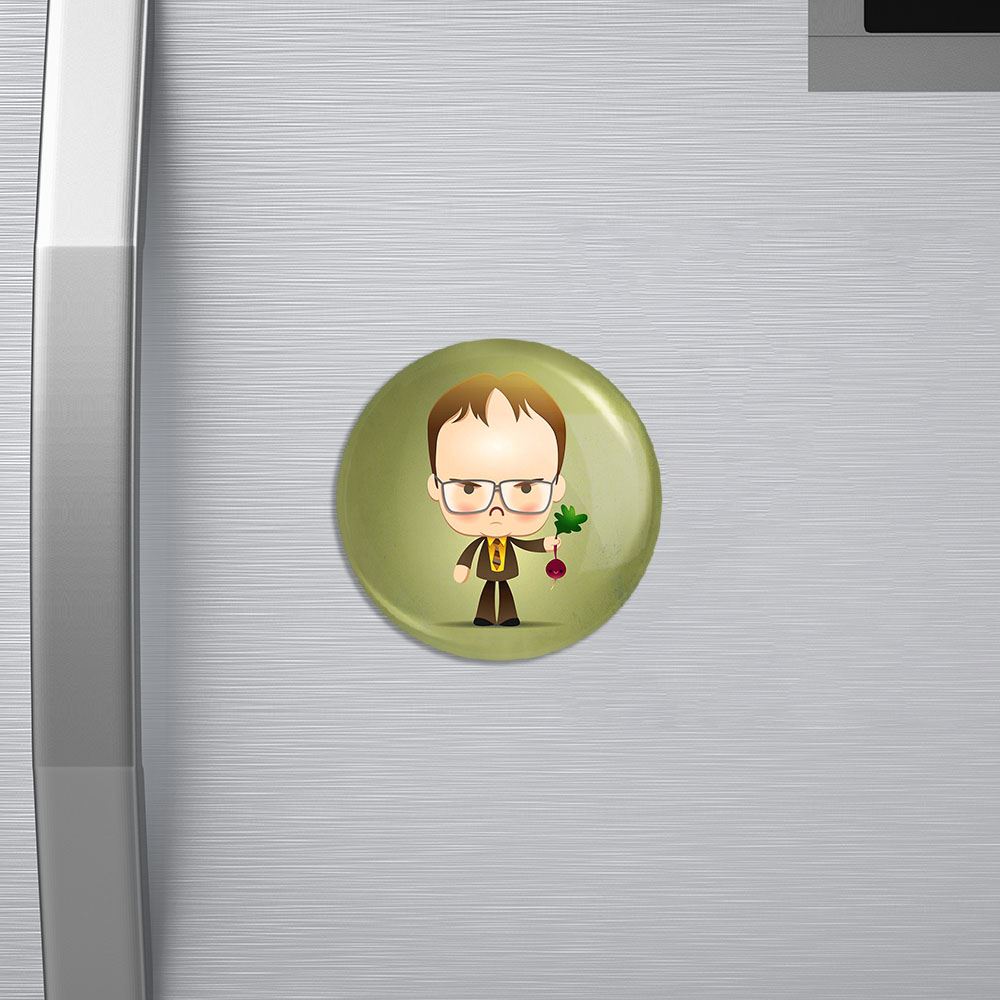 مگنت دوایت شروت سریال آفیس The Office خندالو با روکش سلفون مات مخملی ضدخش و قطعه پشتی فلزی تولید شده است که آهنربای اتمی بکار برده شده در محصول، بصورت مخفی تعبیه شده ودیده نمی شود. ضمن اینکه گیرایی بسیار بالایی داشته و به هیچ عنوان از روی یخچال نمی افتد. نکته مهم این است که به دلیل مخفی بودن آهنربا، هیچگونه خط و خش و زدگی بر روی یخچال ایجاد نخواهد شد. چاپ مگنت یخچال دوایت شروت سریال آفیس The Office نیز با دستگاه های استاندارد و با بهترین سطح کیفیت صورت گرفته و طرح با شفافیتی مثال زدنی و با سلفون چسبی تولید شده است که باعث شده محصول نهایی بدون شکست نور دیده شود. همچنین بسته بندی جذاب و مینیمال مگنت های یخچالی، آنها را مناسب هدیه کرده است. مگنت دوایت شروت سریال آفیس The Office خندالو علاوه بر روی یخچال بر هر سطح فلزی دیگری مثل لولای در اتاق، کمد های آهنی و … نیز قابل نصب است.