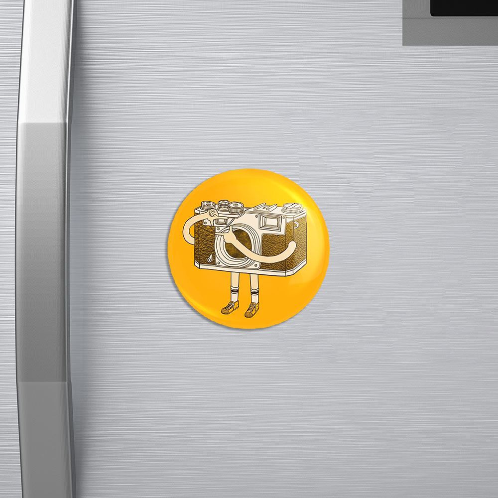 مگنت دوربین خندالو با روکش سلفون مات مخملی ضدخش و قطعه پشتی فلزی تولید شده است که آهنربای اتمی بکار برده شده در محصول، بصورت مخفی تعبیه شده ودیده نمی شود. ضمن اینکه گیرایی بسیار بالایی داشته و به هیچ عنوان از روی یخچال نمی افتد.