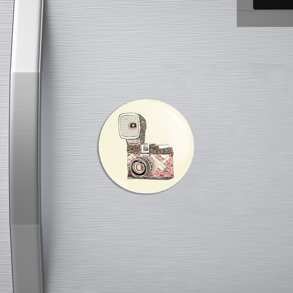مگنت دوربین خندالو با روکش سلفون مات مخملی ضدخش و قطعه پشتی فلزی تولید شده است که آهنربای اتمی بکار برده شده در محصول، بصورت مخفی تعبیه شده ودیده نمی شود. ضمن اینکه گیرایی بسیار بالایی داشته و به هیچ عنوان از روی یخچال نمی افتد.