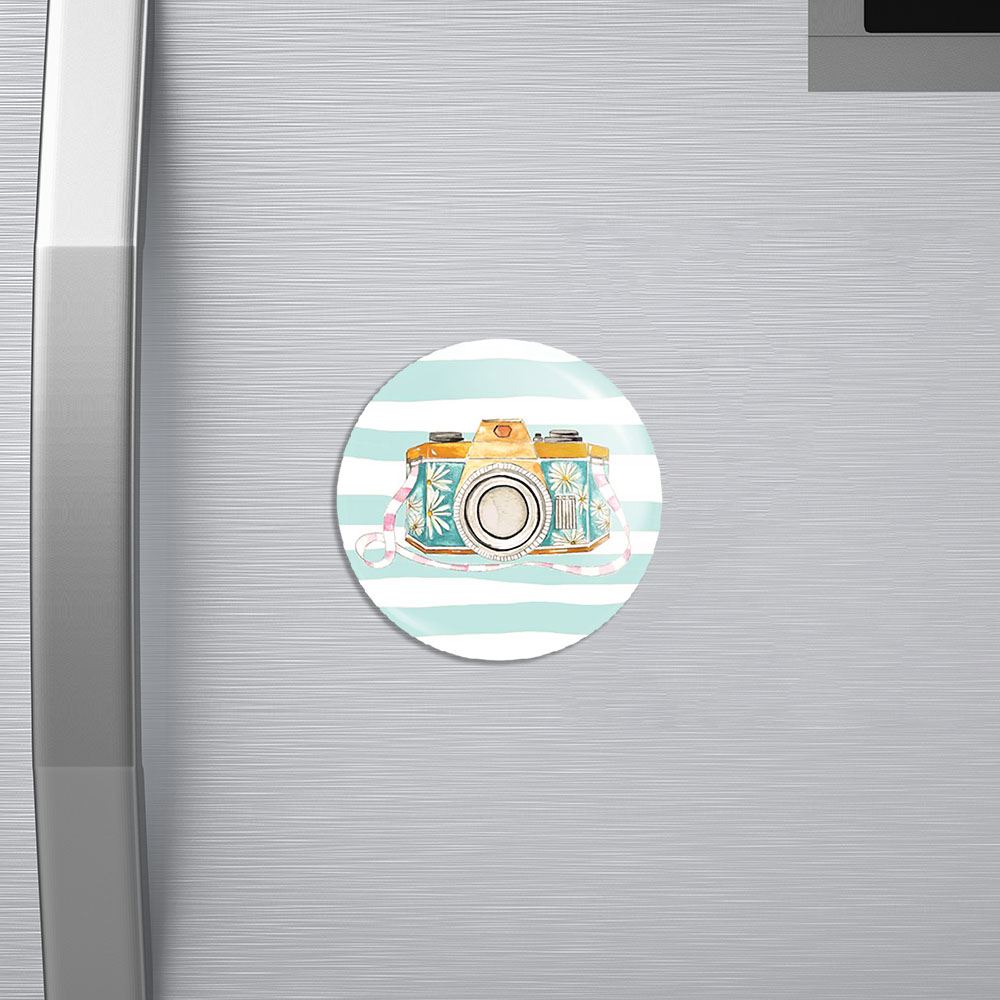 مگنت دوربین خندالو با روکش سلفون مات مخملی ضدخش و قطعه پشتی فلزی تولید شده است که آهنربای اتمی بکار برده شده در محصول، بصورت مخفی تعبیه شده ودیده نمی شود. ضمن اینکه گیرایی بسیار بالایی داشته و به هیچ عنوان از روی یخچال نمی افتد.