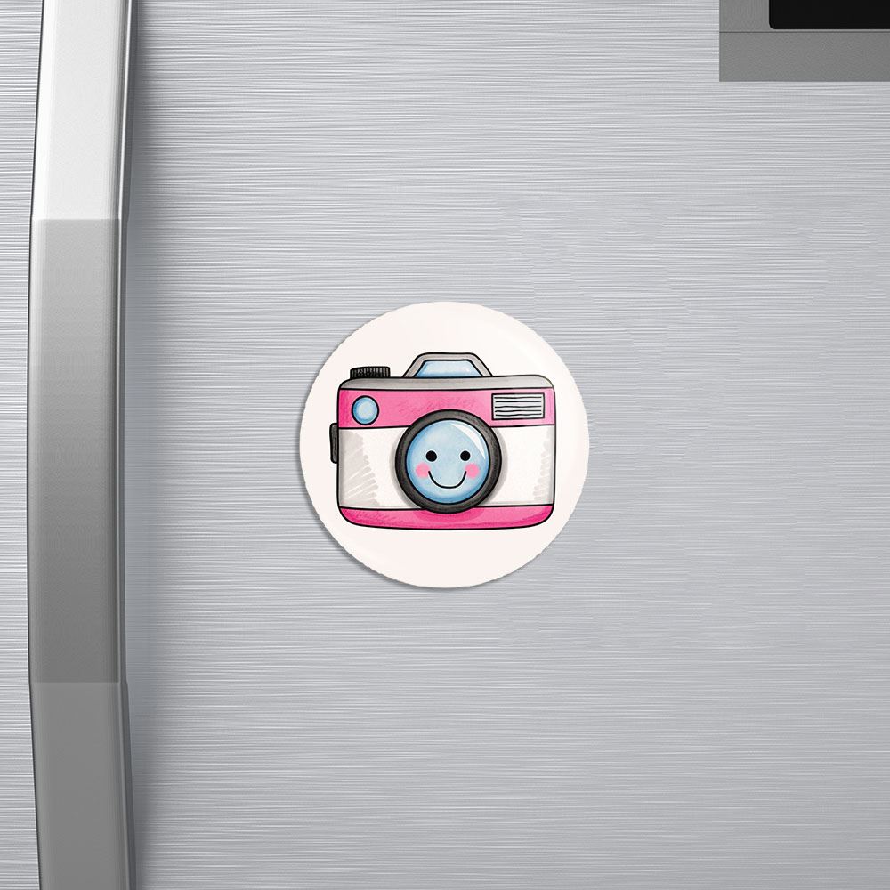 مگنت دوربین خندالو با روکش سلفون مات مخملی ضدخش و قطعه پشتی فلزی تولید شده است که آهنربای اتمی بکار برده شده در محصول، بصورت مخفی تعبیه شده ودیده نمی شود. ضمن اینکه گیرایی بسیار بالایی داشته و به هیچ عنوان از روی یخچال نمی افتد.