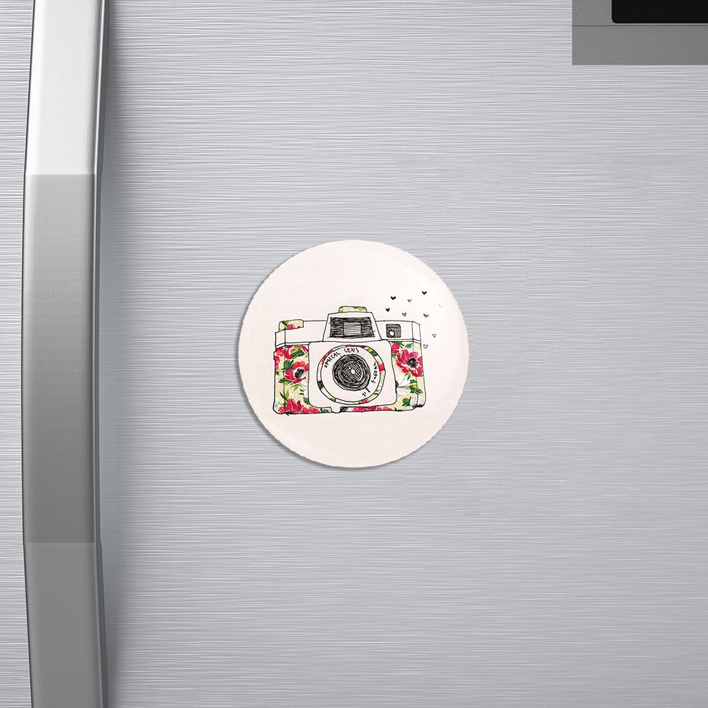 مگنت دوربین خندالو با روکش سلفون مات مخملی ضدخش و قطعه پشتی فلزی تولید شده است که آهنربای اتمی بکار برده شده در محصول، بصورت مخفی تعبیه شده ودیده نمی شود. ضمن اینکه گیرایی بسیار بالایی داشته و به هیچ عنوان از روی یخچال نمی افتد.