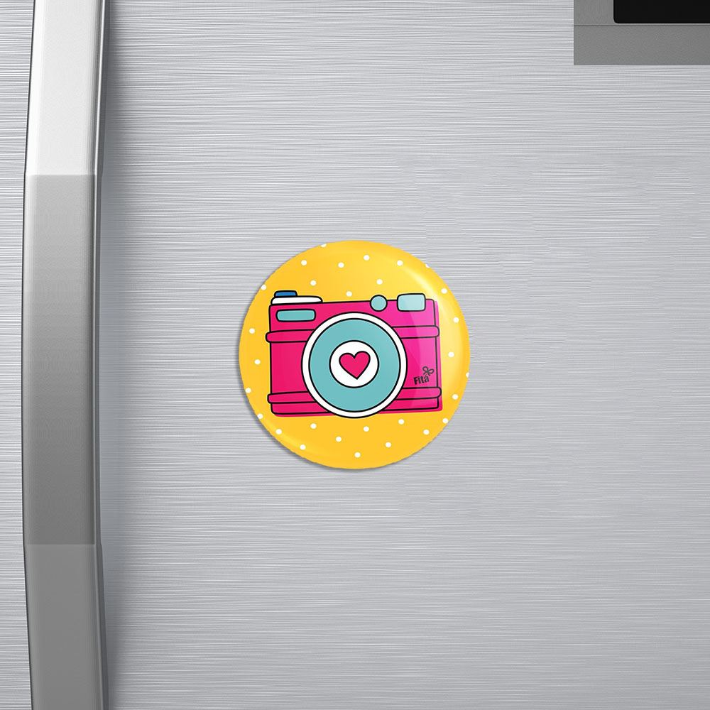 مگنت دوربین خندالو با روکش سلفون مات مخملی ضدخش و قطعه پشتی فلزی تولید شده است که آهنربای اتمی بکار برده شده در محصول، بصورت مخفی تعبیه شده ودیده نمی شود. ضمن اینکه گیرایی بسیار بالایی داشته و به هیچ عنوان از روی یخچال نمی افتد.