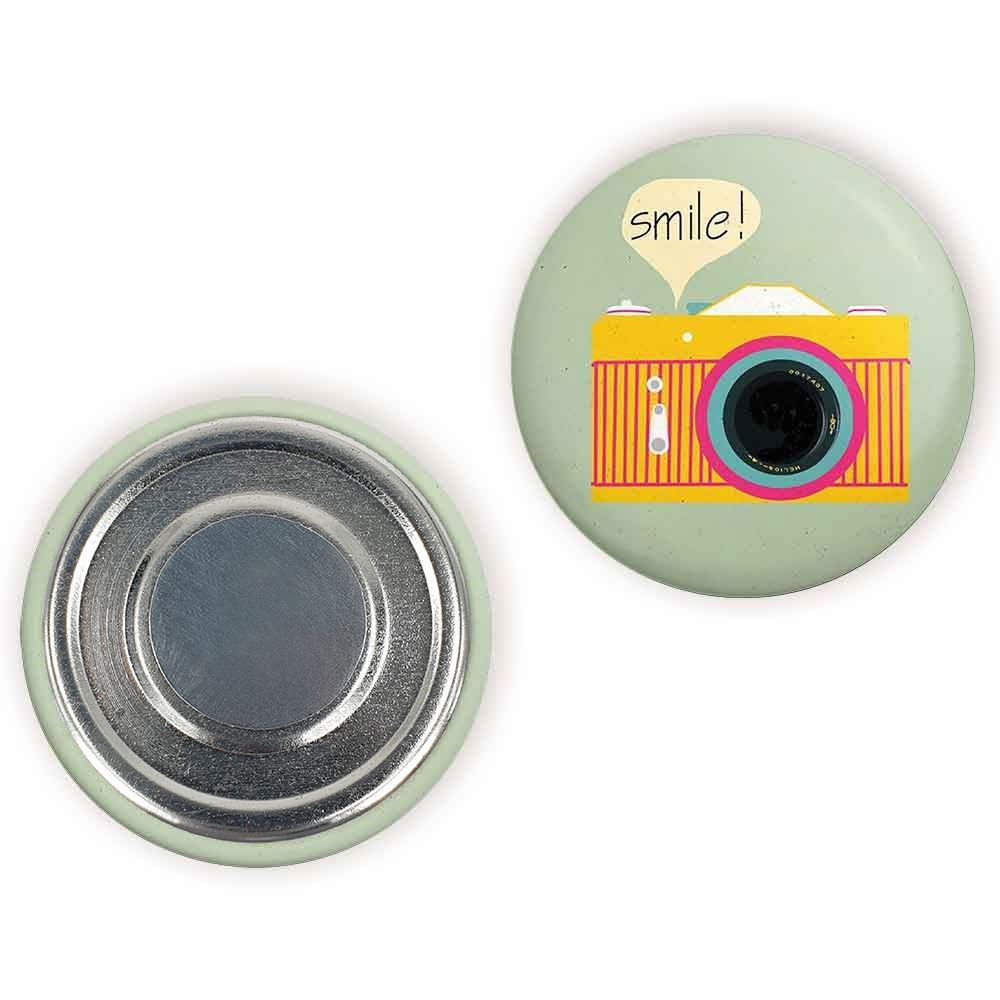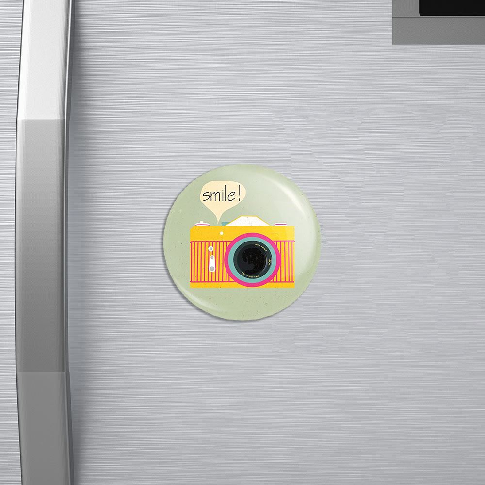 مگنت دوربین خندالو با روکش سلفون مات مخملی ضدخش و قطعه پشتی فلزی تولید شده است که آهنربای اتمی بکار برده شده در محصول، بصورت مخفی تعبیه شده ودیده نمی شود. ضمن اینکه گیرایی بسیار بالایی داشته و به هیچ عنوان از روی یخچال نمی افتد.