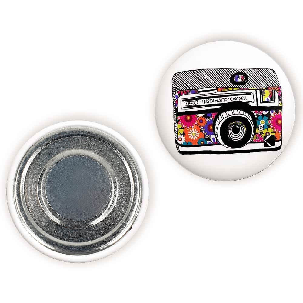 مگنت دوربین خندالو با روکش سلفون مات مخملی ضدخش و قطعه پشتی فلزی تولید شده است که آهنربای اتمی بکار برده شده در محصول، بصورت مخفی تعبیه شده ودیده نمی شود. ضمن اینکه گیرایی بسیار بالایی داشته و به هیچ عنوان از روی یخچال نمی افتد.