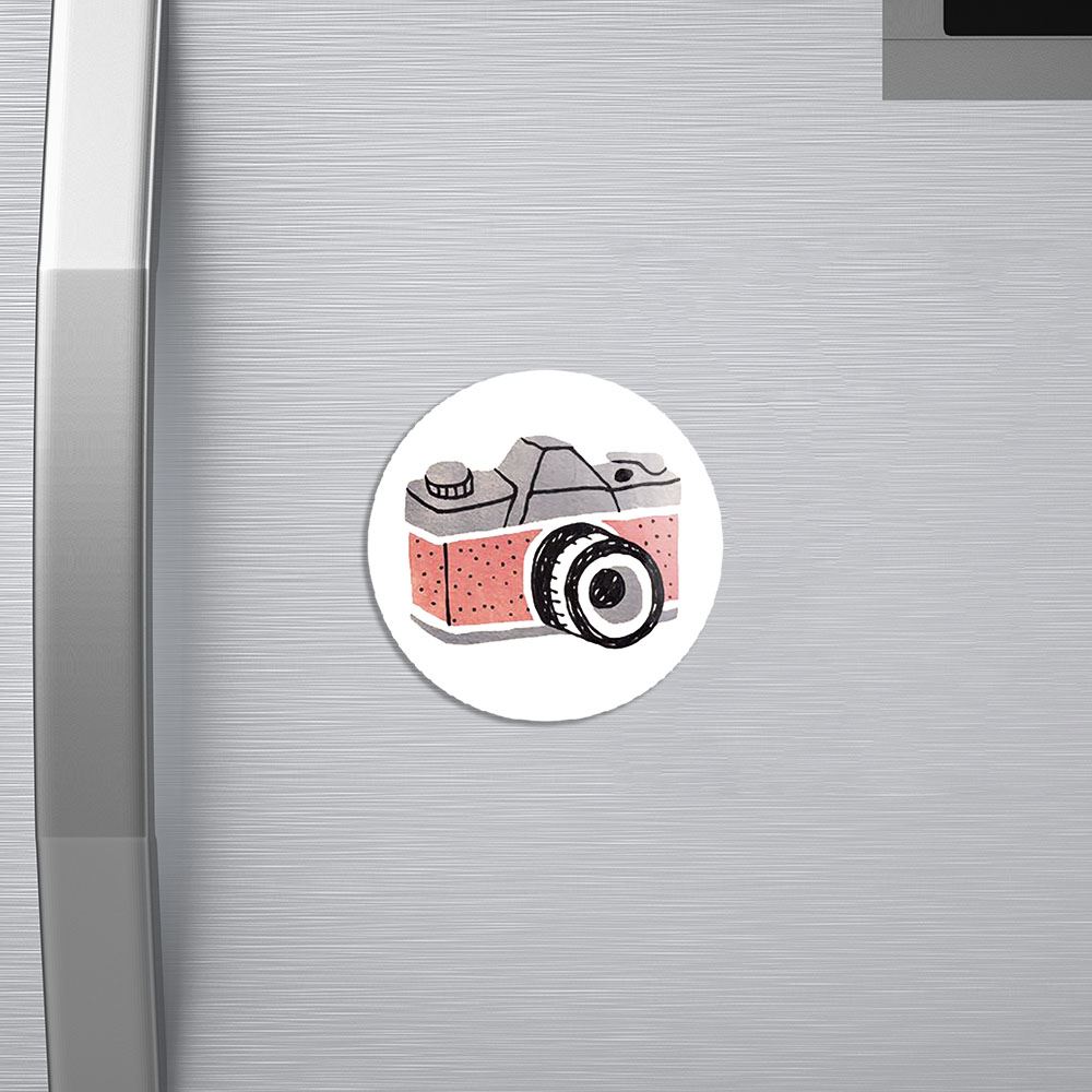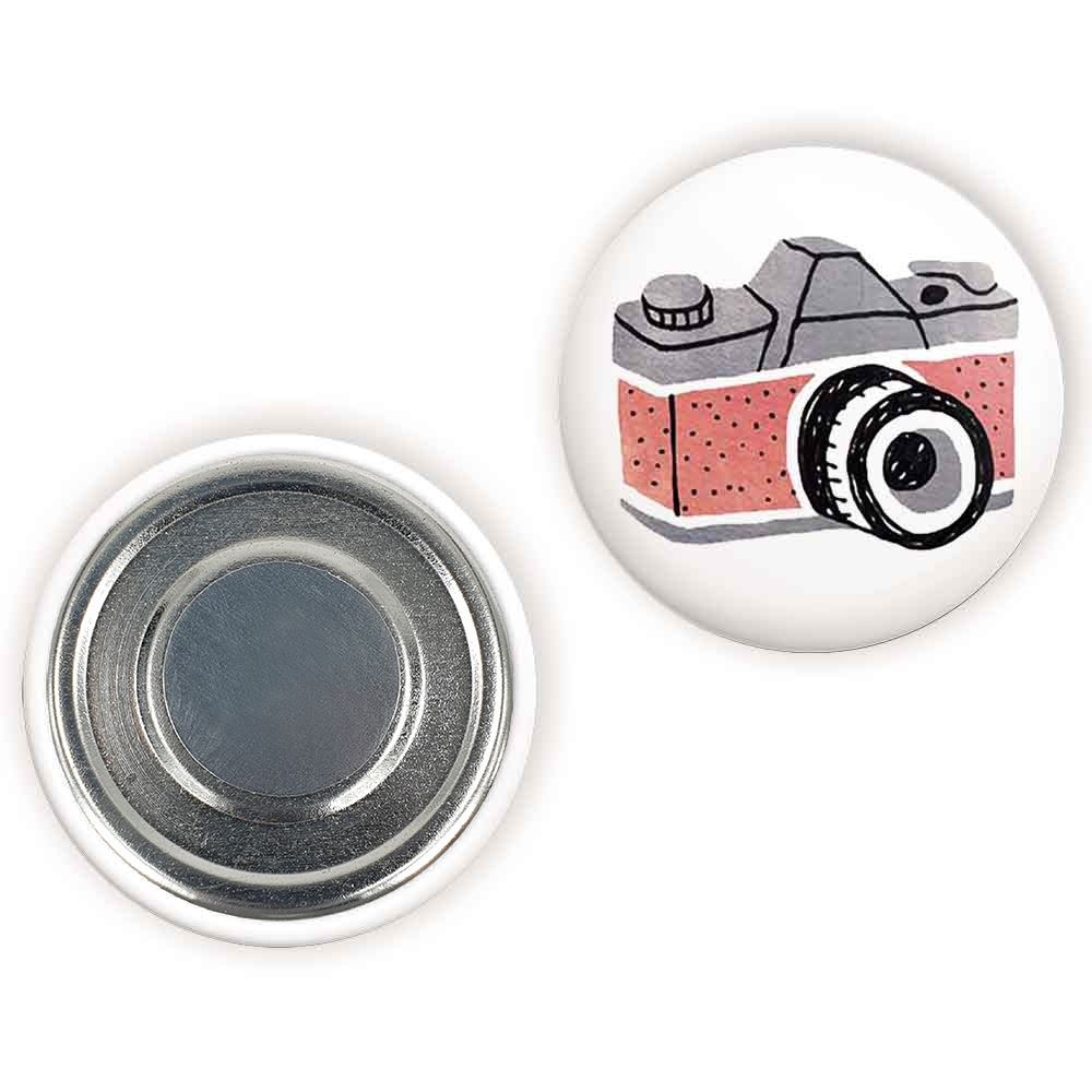 مگنت دوربین خندالو با روکش سلفون مات مخملی ضدخش و قطعه پشتی فلزی تولید شده است که آهنربای اتمی بکار برده شده در محصول، بصورت مخفی تعبیه شده ودیده نمی شود. ضمن اینکه گیرایی بسیار بالایی داشته و به هیچ عنوان از روی یخچال نمی افتد.