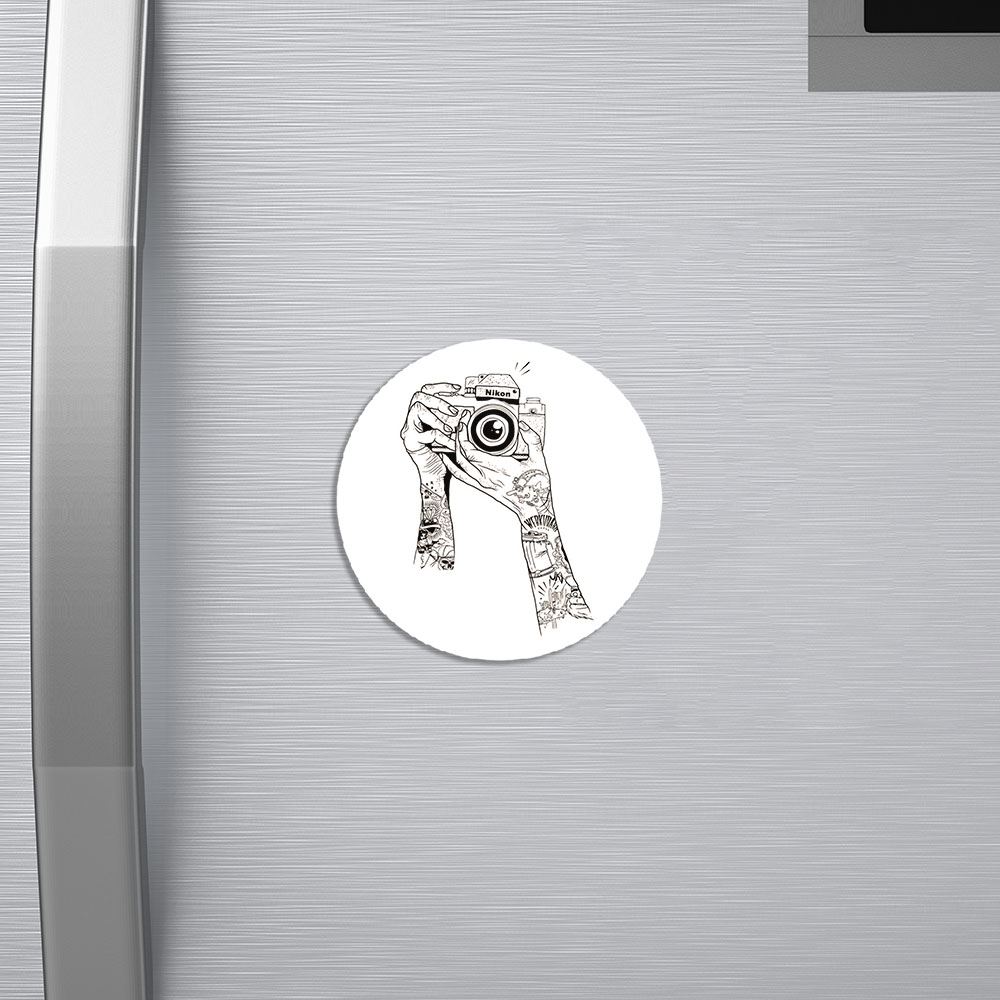 مگنت دوربین خندالو با روکش سلفون مات مخملی ضدخش و قطعه پشتی فلزی تولید شده است که آهنربای اتمی بکار برده شده در محصول، بصورت مخفی تعبیه شده ودیده نمی شود. ضمن اینکه گیرایی بسیار بالایی داشته و به هیچ عنوان از روی یخچال نمی افتد.