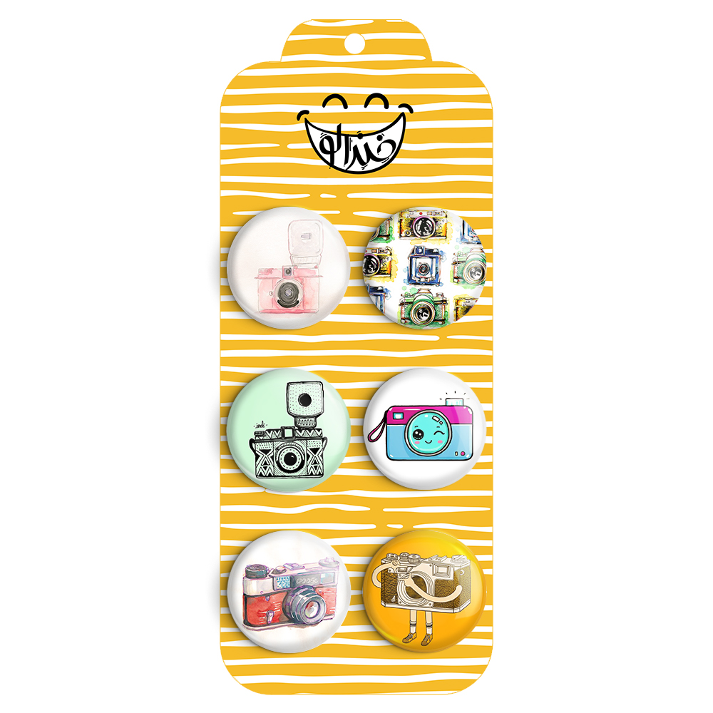 پک 6 عددی مگنت یخچال خندالو طرح دوربین (Camera) با روکش سلفون مات حرارتی مخملی ضدخش و قطعه پشتی فلزی تولید شده است که آهنربای اتمی بکار برده شده در محصول، بصورت مخفی تعبیه شده ودیده نمی شود. ضمن اینکه گیرایی بسیار بالایی داشته و به هیچ عنوان از روی یخچال نمی افتد. نکته مهم این است که به دلیل مخفی بودن آهنربا، هیچگونه خط و خش و زدگی بر روی یخچال ایجاد نخواهد شد.