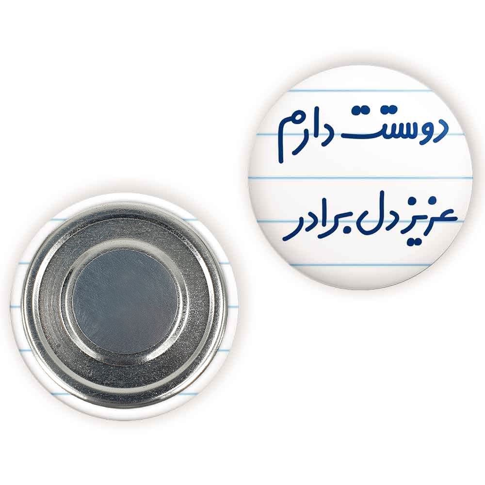 مگنت دوستت دارم عزیزدل برادر خندالو با روکش سلفون مات مخملی ضدخش و قطعه پشتی فلزی تولید شده است که آهنربای اتمی بکار برده شده در محصول، بصورت مخفی تعبیه شده ودیده نمی شود. ضمن اینکه گیرایی بسیار بالایی داشته و به هیچ عنوان از روی یخچال نمی افتد. نکته مهم این است که به دلیل مخفی بودن آهنربا، هیچگونه خط و خش و زدگی بر روی یخچال ایجاد نخواهد شد. چاپ مگنت یخچال دوستت دارم عزیزدل برادر نیز با دستگاه های استاندارد و با بهترین سطح کیفیت صورت گرفته و طرح با شفافیتی مثال زدنی و با سلفون چسبی تولید شده است که باعث شده محصول نهایی بدون شکست نور دیده شود. همچنین بسته بندی جذاب و مینیمال مگنت های یخچالی، آنها را مناسب هدیه کرده است. مگنت دوستت دارم عزیزدل برادر خندالو علاوه بر روی یخچال بر هر سطح فلزی دیگری مثل لولای در اتاق، کمد های آهنی و … نیز قابل نصب است.