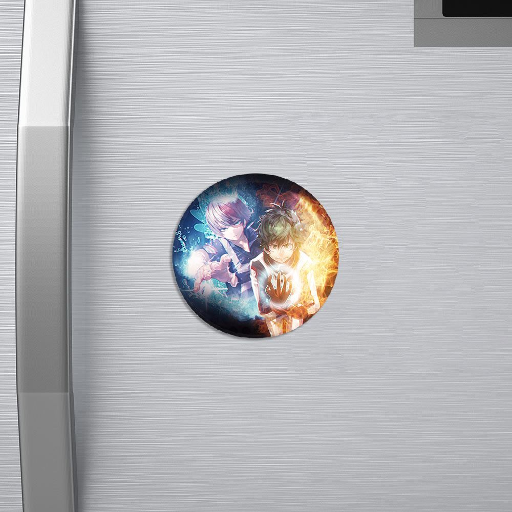 مگنت دکو و شوتو انیمه آکادمی قهرمان من My Hero Academia خندالو با روکش سلفون مات مخملی ضدخش و قطعه پشتی فلزی تولید شده است که آهنربای اتمی بکار برده شده در محصول، بصورت مخفی تعبیه شده ودیده نمی شود. ضمن اینکه گیرایی بسیار بالایی داشته و به هیچ عنوان از روی یخچال نمی افتد.