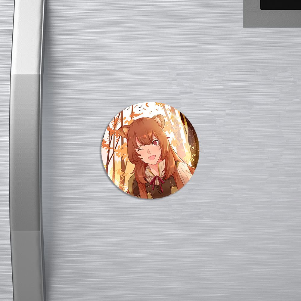 مگنت رافتالیا انیمه ظهور قهرمان سپر خندالو با روکش سلفون مات مخملی ضدخش و قطعه پشتی فلزی تولید شده است که آهنربای اتمی بکار برده شده در محصول، بصورت مخفی تعبیه شده ودیده نمی شود. ضمن اینکه گیرایی بسیار بالایی داشته و به هیچ عنوان از روی یخچال نمی افتد.