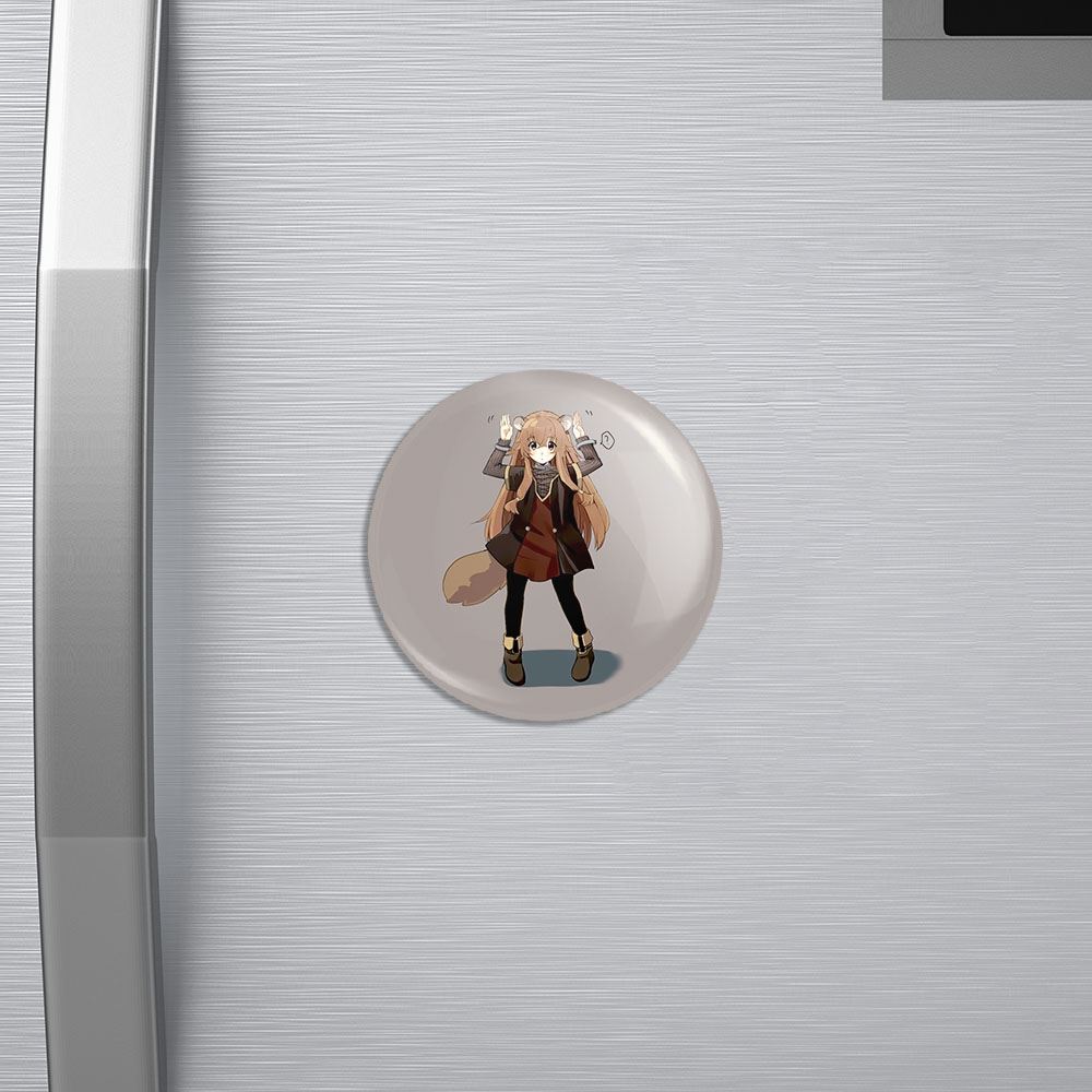 مگنت رافتالیا انیمه ظهور قهرمان سپر خندالو با روکش سلفون مات مخملی ضدخش و قطعه پشتی فلزی تولید شده است که آهنربای اتمی بکار برده شده در محصول، بصورت مخفی تعبیه شده ودیده نمی شود. ضمن اینکه گیرایی بسیار بالایی داشته و به هیچ عنوان از روی یخچال نمی افتد.