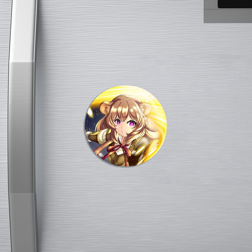 مگنت رافتالیا انیمه ظهور قهرمان سپر خندالو با روکش سلفون مات مخملی ضدخش و قطعه پشتی فلزی تولید شده است که آهنربای اتمی بکار برده شده در محصول، بصورت مخفی تعبیه شده ودیده نمی شود. ضمن اینکه گیرایی بسیار بالایی داشته و به هیچ عنوان از روی یخچال نمی افتد.