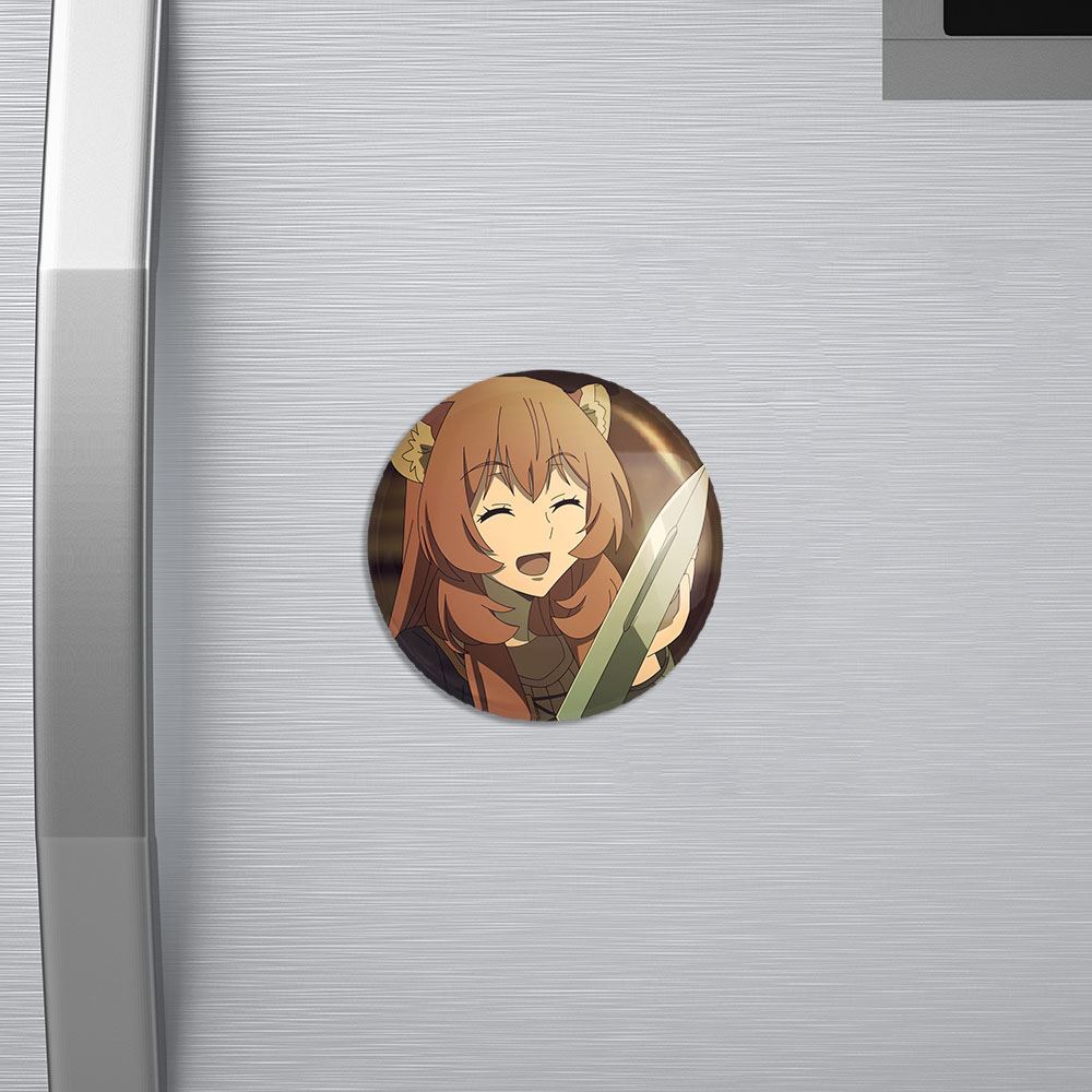 مگنت رافتالیا انیمه ظهور قهرمان سپر خندالو با روکش سلفون مات مخملی ضدخش و قطعه پشتی فلزی تولید شده است که آهنربای اتمی بکار برده شده در محصول، بصورت مخفی تعبیه شده ودیده نمی شود. ضمن اینکه گیرایی بسیار بالایی داشته و به هیچ عنوان از روی یخچال نمی افتد.