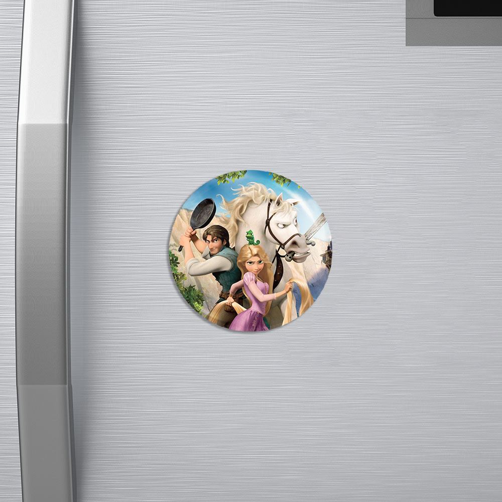 مگنت راپونزل گیسو کمند Rapunzel خندالو با روکش سلفون مات مخملی ضدخش و قطعه پشتی فلزی تولید شده است که آهنربای اتمی بکار برده شده در محصول، بصورت مخفی تعبیه شده ودیده نمی شود. ضمن اینکه گیرایی بسیار بالایی داشته و به هیچ عنوان از روی یخچال نمی افتد.